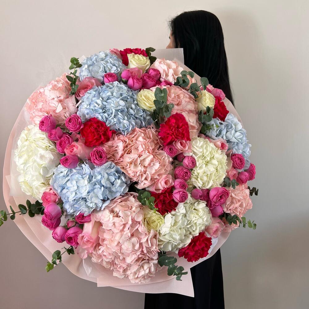 Большой букет из разноцветных гортензий "Объятия чувств"