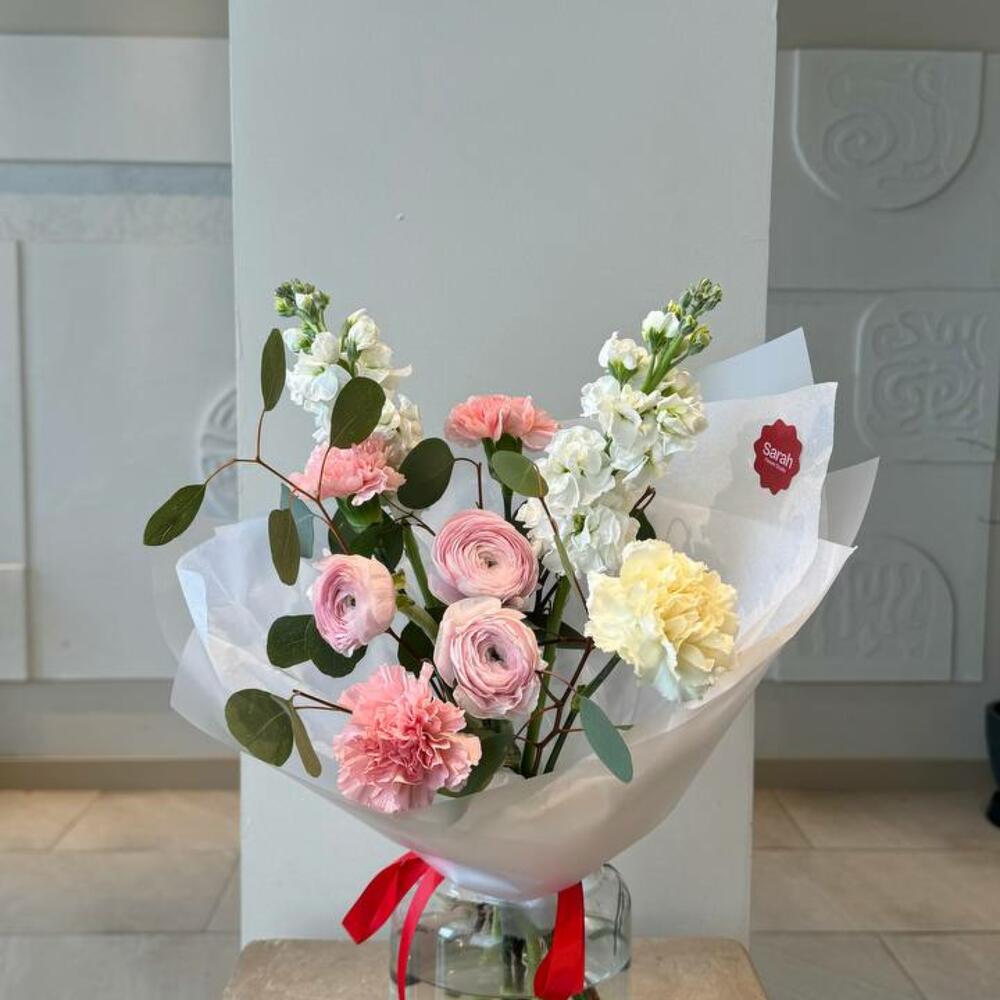 Маттиола - 2 дана Эвкалипт - 1 дана Гвоздика - 4 дана Ранункулюс - 3 дана