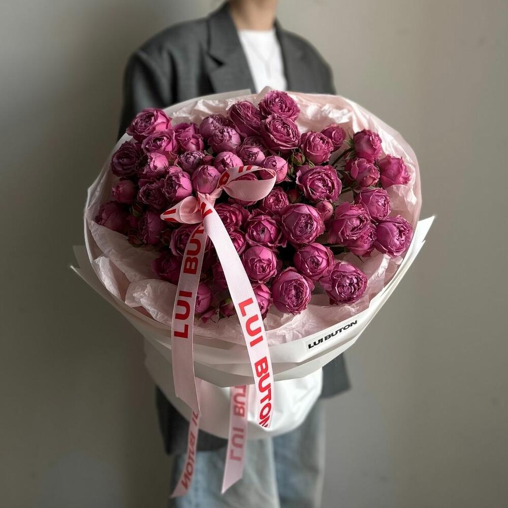 Яркий и запоминающийся букет из 17 веток кустовых пионовидных роз сорта Misty Bubbles, созданный, чтобы удивлять и вдохновлять. Отличный подарок для тех, кто любит стиль и красоту.