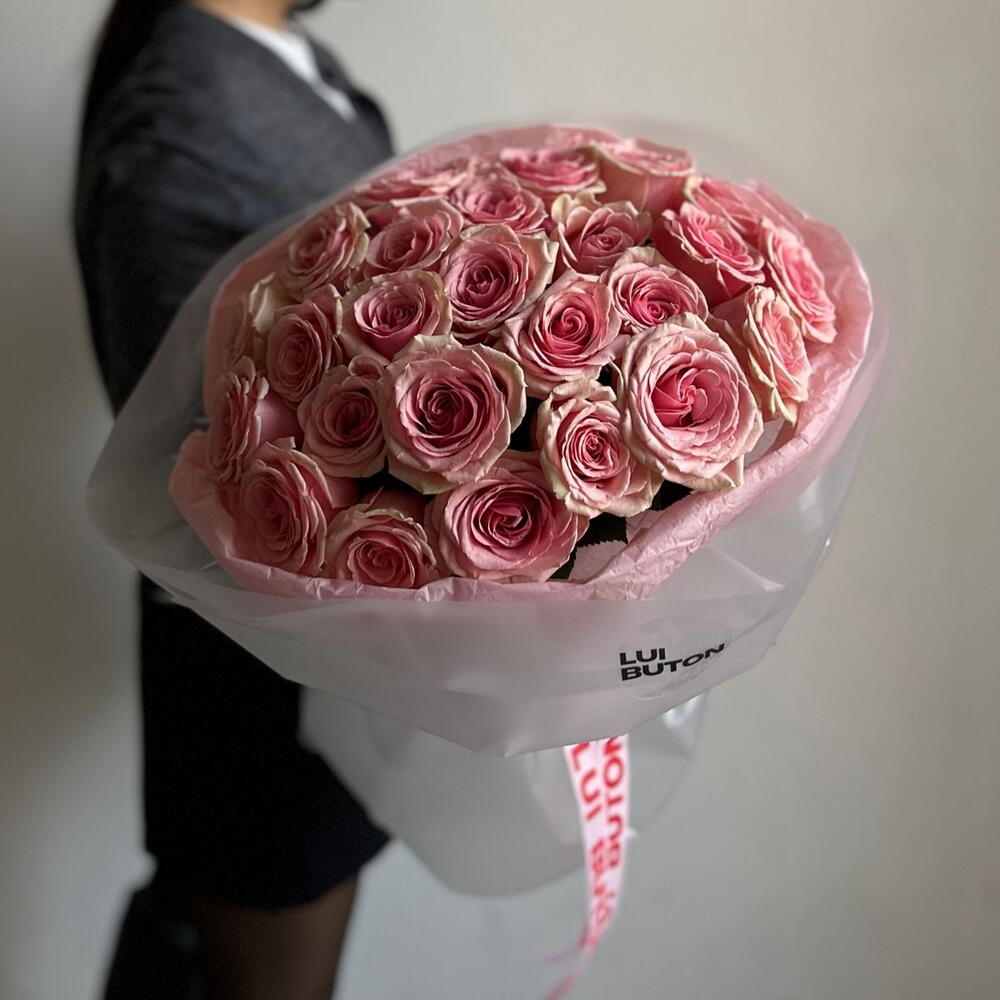 Букет из 25шт роз сорта Джералдин в нежном оформлении — символ любви, внимания и искренних чувств. Такой букет никогда не останется без эмоций