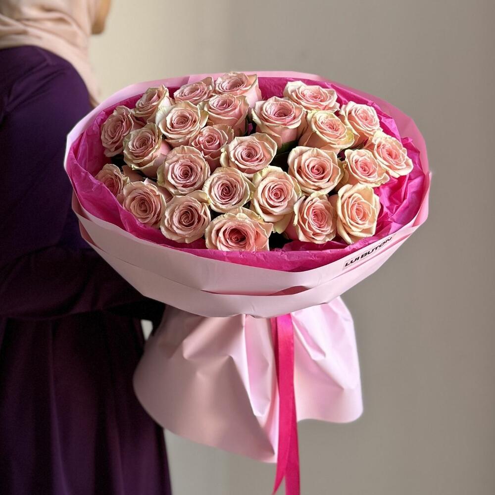 Букет из 25шт роз сорта Джералдин - нежная гармония оттенков для идеального настроения