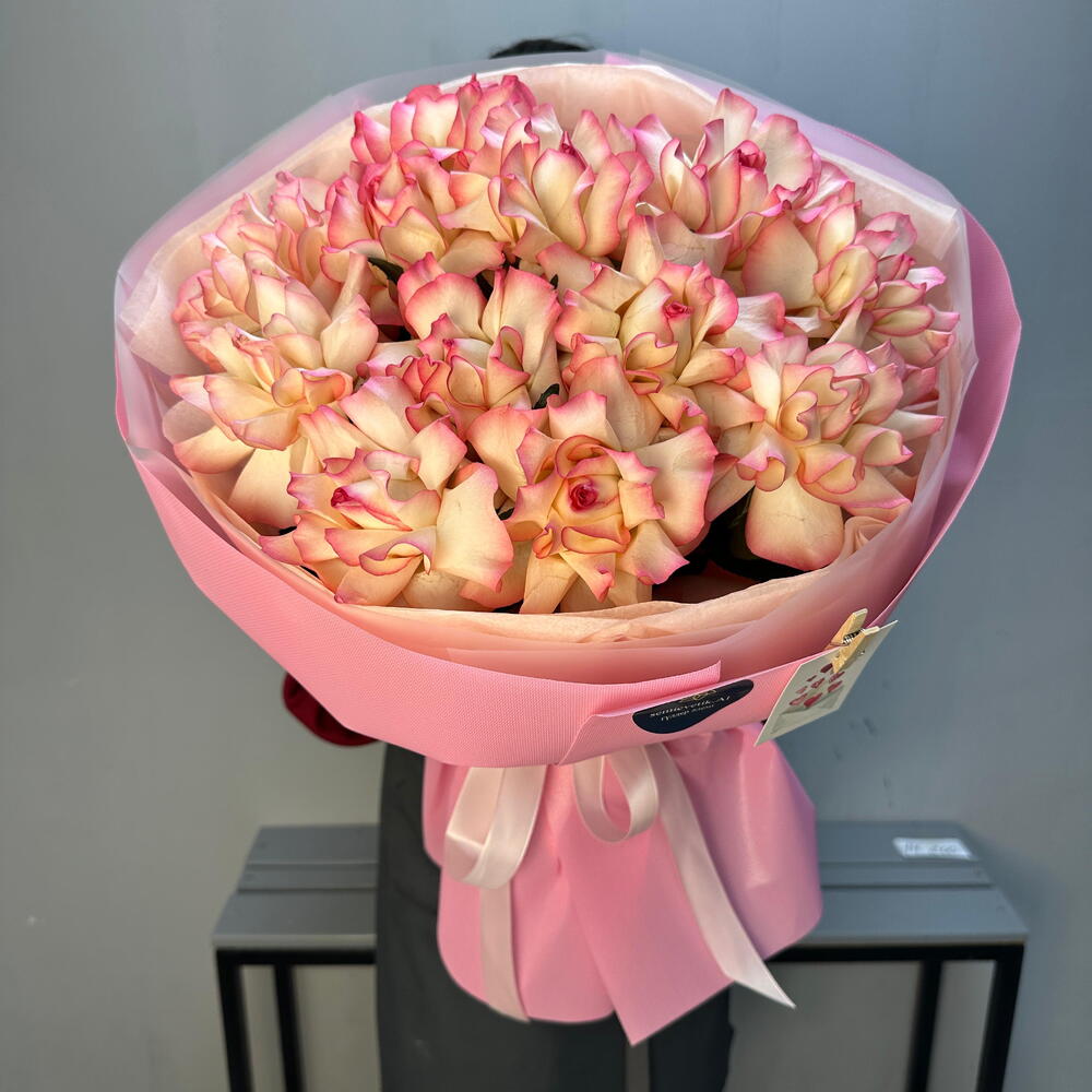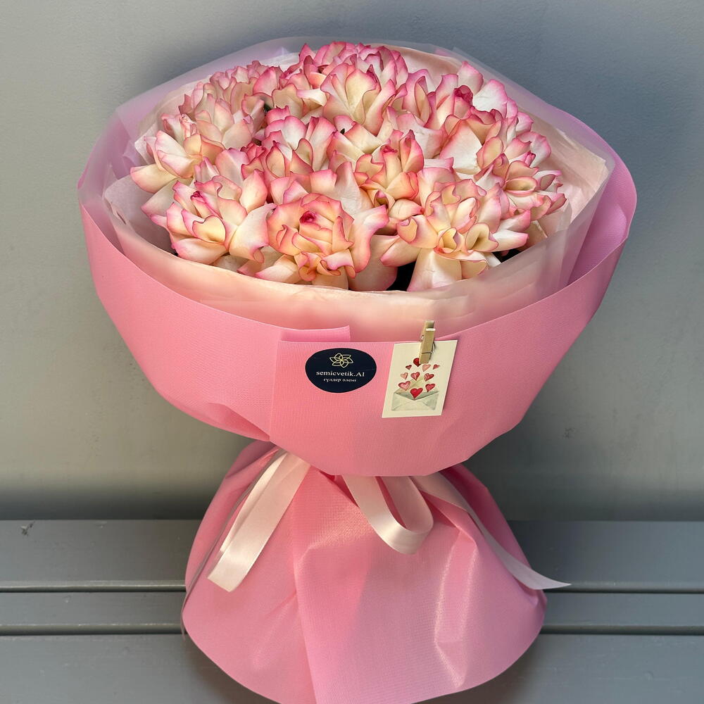 🌷«Розовый Шёпот»💕 Нежные розовые розы, обёрнутые в белое тишью и полупрозрачную матовую аква-бумагу, создают утончённый образ, в котором так легко почувствовать лёгкость и уют 🤍✨ Розовое оформление и мягкие ленты добавляют воздушности, превращая букет в шёпот заботы и тепла, который говорит за вас 🌸💫 Идеально для поздравлений, благодарности или первого свидания, когда хочется подарить настроение нежности и любви. 💝 Подарите то, что невозможно забыть.