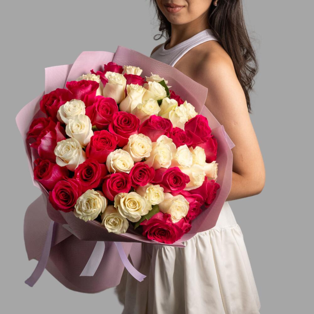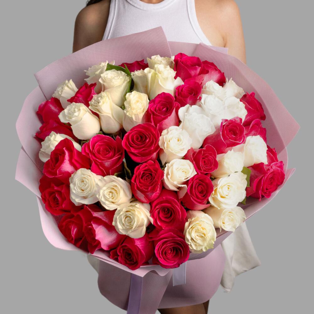 Этот букет создает впечатление великолепия и стиля. Он станет прекрасным подарком для любого торжественного момента или романтического события, выражая ваши чувства и заботу в самом изысканном виде.