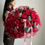 Букет "51 ярких кустовых роз с эвкалиптом"