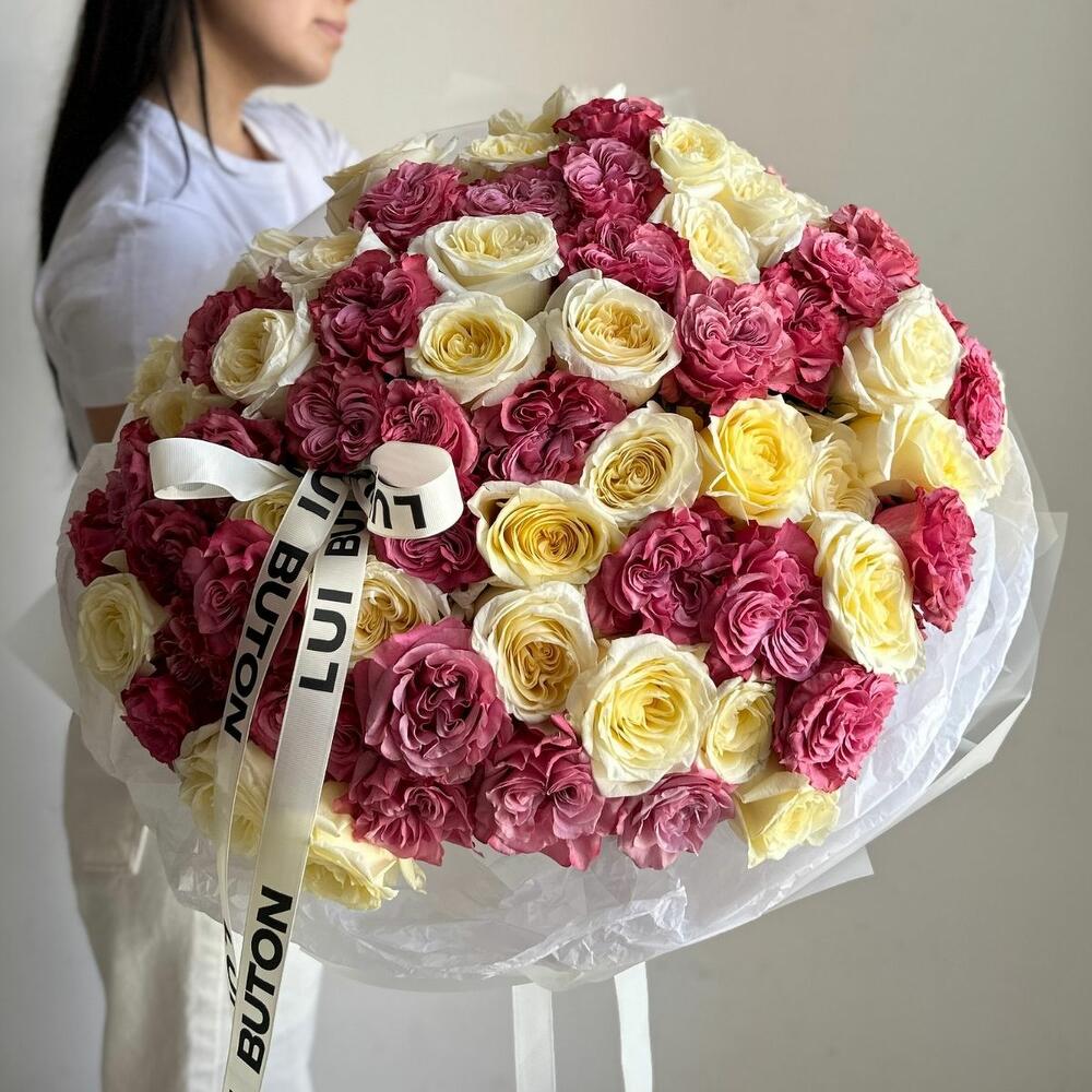 Этот великолепный монобукет, состоящий из 75 пионовидных роз, не оставит равнодушным никого. Роскошные цветы, напоминающие пионы, поражают своими крупными головками и богатым цветением. Аромат этих роз наполнит помещение тонким и неповторимым цветочным букетом. Композиция станет идеальным подарком для выпускников, на свадьбу или любой другой праздник. Монобукет из пионовидных роз - символ любви, адмирации и уважения.