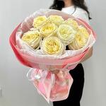 Этот красивый монобукет из 9 пионовидных роз является воплощением элегантности и роскоши. Золотистый оттенок лепестков мягко переходит в красный, создавая необыкновенно красивый цветочный акцент. Такой букет подарит незабываемые мгновения и дополнит любой торжественный момент особенным шармом. Идеально подходит как для юбилеев, так и для романтических сюрпризов.