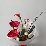 Анемон - 1 дана Антуриум - 2 дана Калла - 1 дана Эвкалипт - 1 дана Ранункулюс - 3 дана ветка вербы - 1 дана