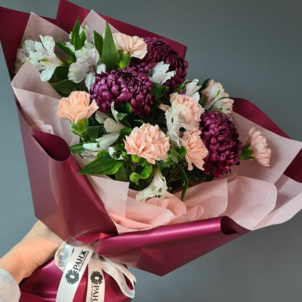Альстроэмерия - 3 дана Хризантема одноголовая - 3 дана Гвоздика одноголовая - 7 дана