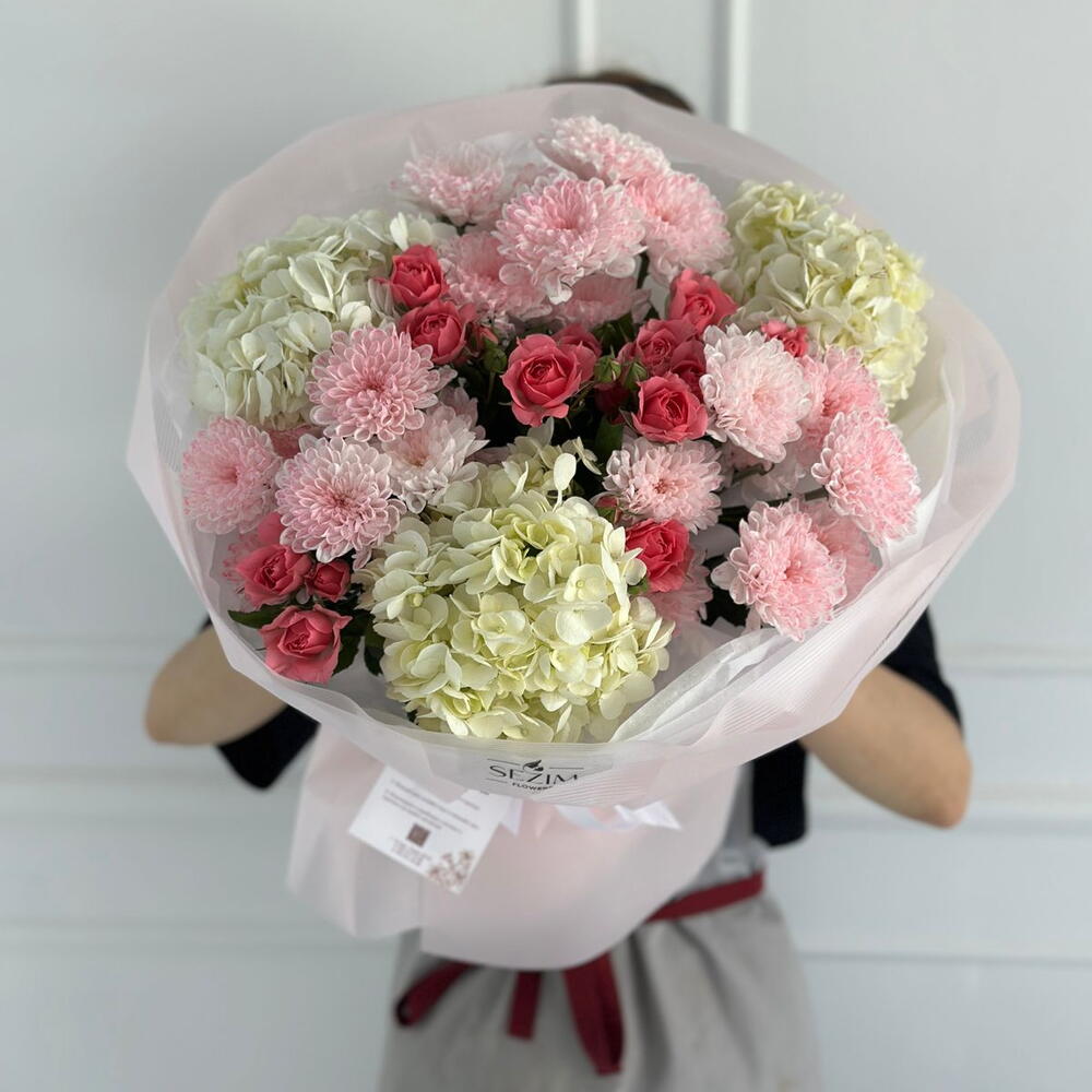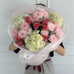 Гортензия - 3 дана Хризантема бұтасы - 3 дана Бұта раушаны - 4 дана