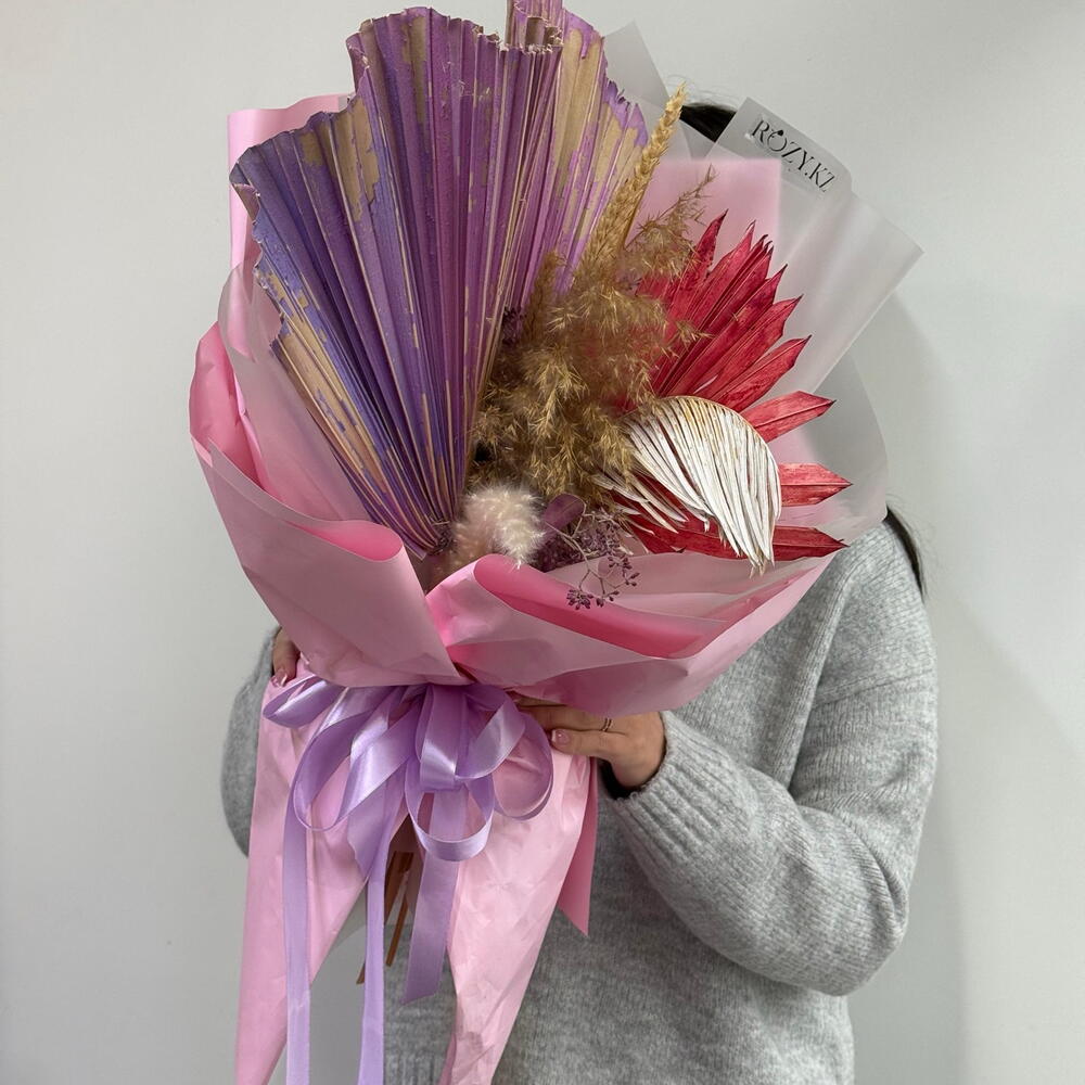 Пшеница - 3 дана Лист пальмы - 1 дана Эвкалипт сухоцвет - 1 дана лист пальмы сухоцвет - 1 дана пампас сетария - 1 дана большой лагурус - 1 дана