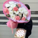 яркия пышный букет + молочный вкусный бенто торт ❤️