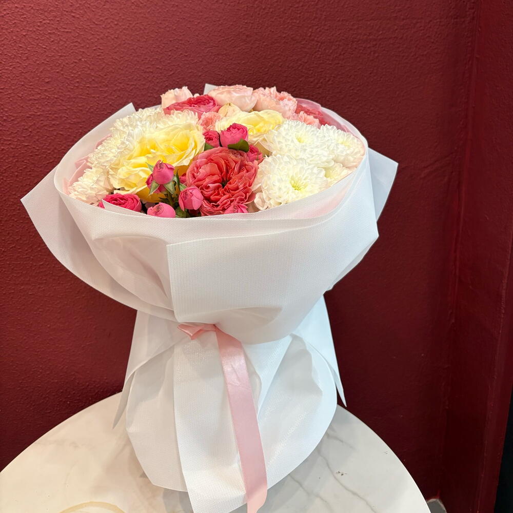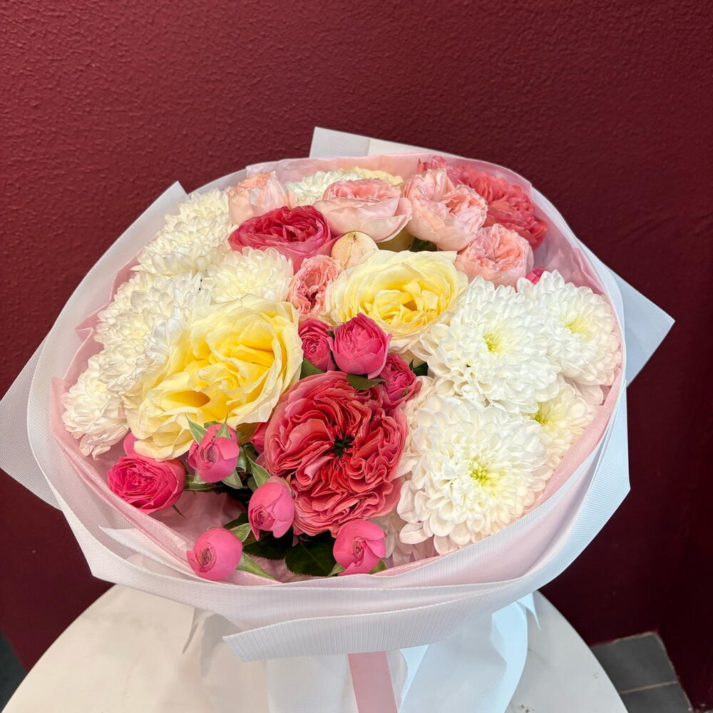Хризантема бұтасы - 2 дана Раушан - 3 дана Бұта раушаны - 1 дана Пионовидная роза - 3 дана Пион бұта раушаны - 1 дана