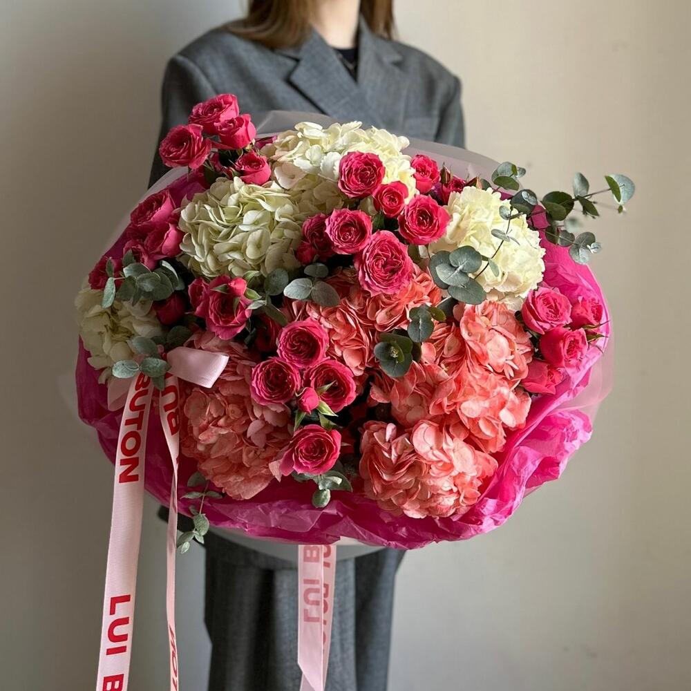 Эвкалипт - 2 дана гортензии - 8 дана бұта раушандары - 7 дана