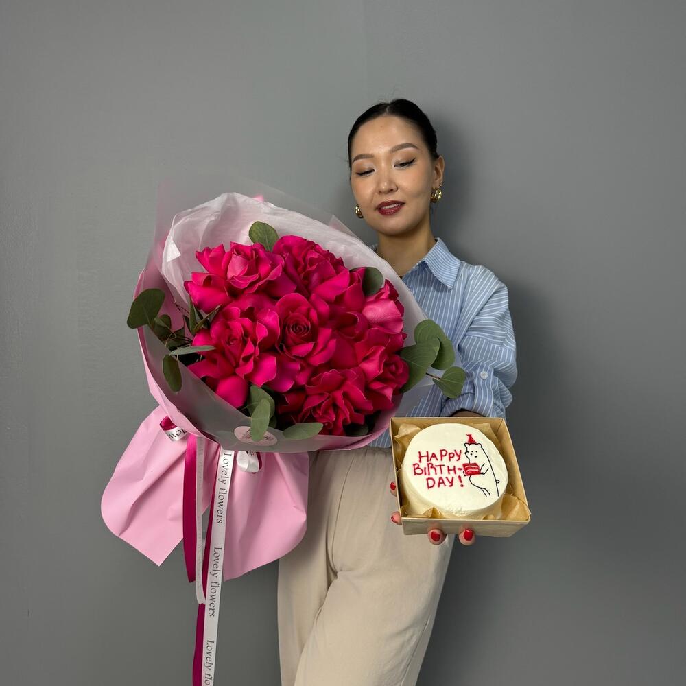 Все было супер! В магазине не было ярко розовых цветов, как на фотографии и мне предложили другие цветовые варианты, согласовали время с получателем и доставили. Рахмет ❤️