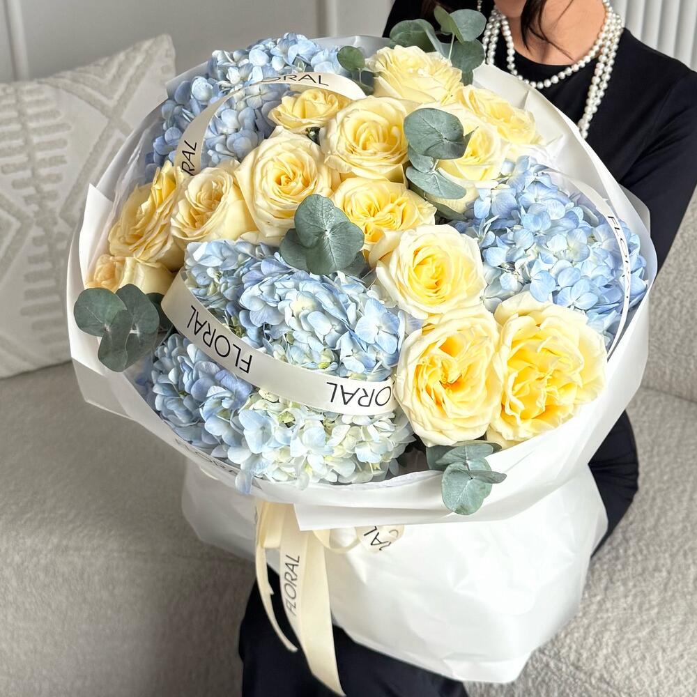 Гортензия - 3 дана Эвкалипт - 1 дана Пионовидная роза - 13 дана