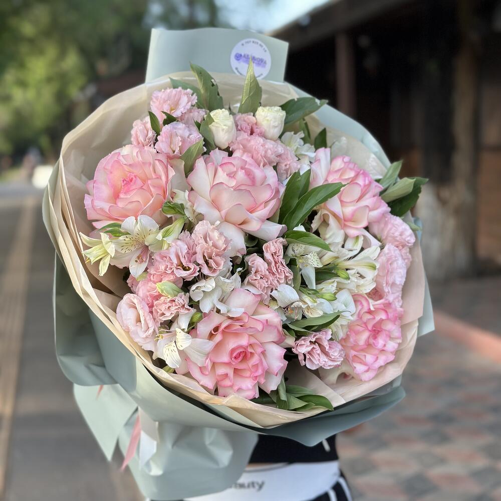 Альстроэмерия - 9 дана Лизиантус - 5 дана Французская роза - 5 дана