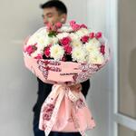 Букет из кустовых роз и хризантем наполнен лёгкостью и трепетом. Мягкие оттенки, свежие цветы и утончённое оформление создают ощущение гармонии и тепла