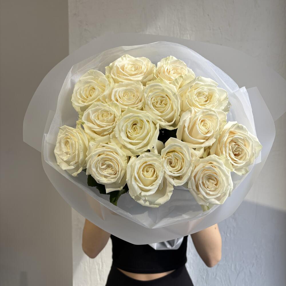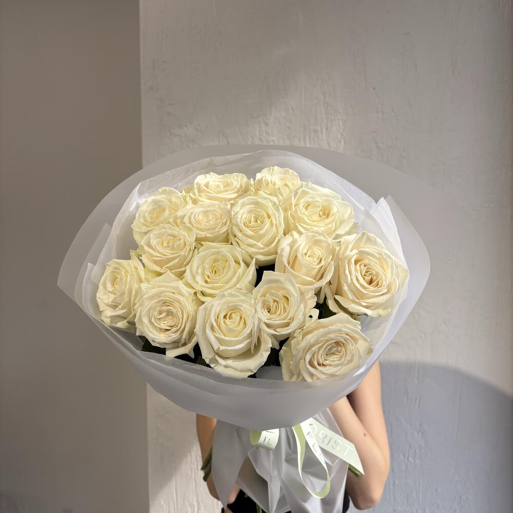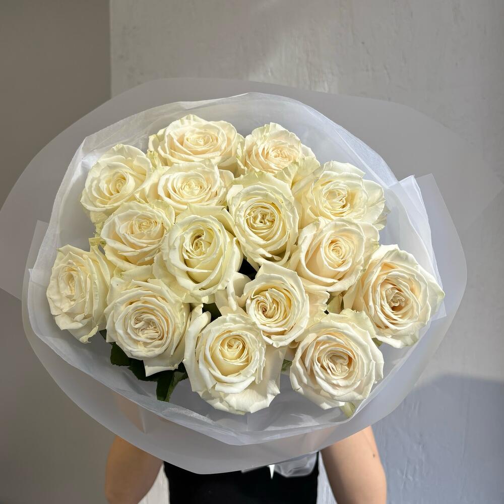 белая роза - 15 дана Фирменная упаковка - 1 дана аквабокс с водой - 1 дана витамины для цветов (кризал) - 1 дана
