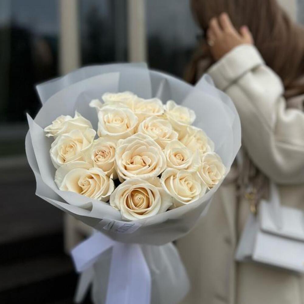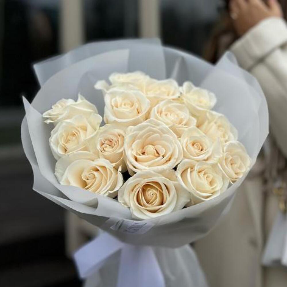 Букет из 15 белых роз в фирменной упаковке (9.05)
