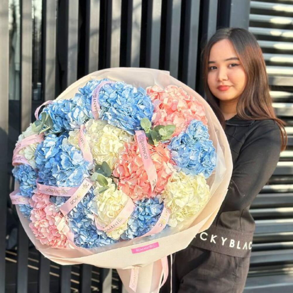 Букет из 15 Premium гортензий — это идеальное сочетание нежности и изысканности. Великолепные гортензии с их пышными, многослойными цветами создают невероятно элегантную и романтичную композицию, которая станет ярким акцентом любого события. Этот букет — это настоящее произведение флористического искусства, наполненное гармонией и красотой