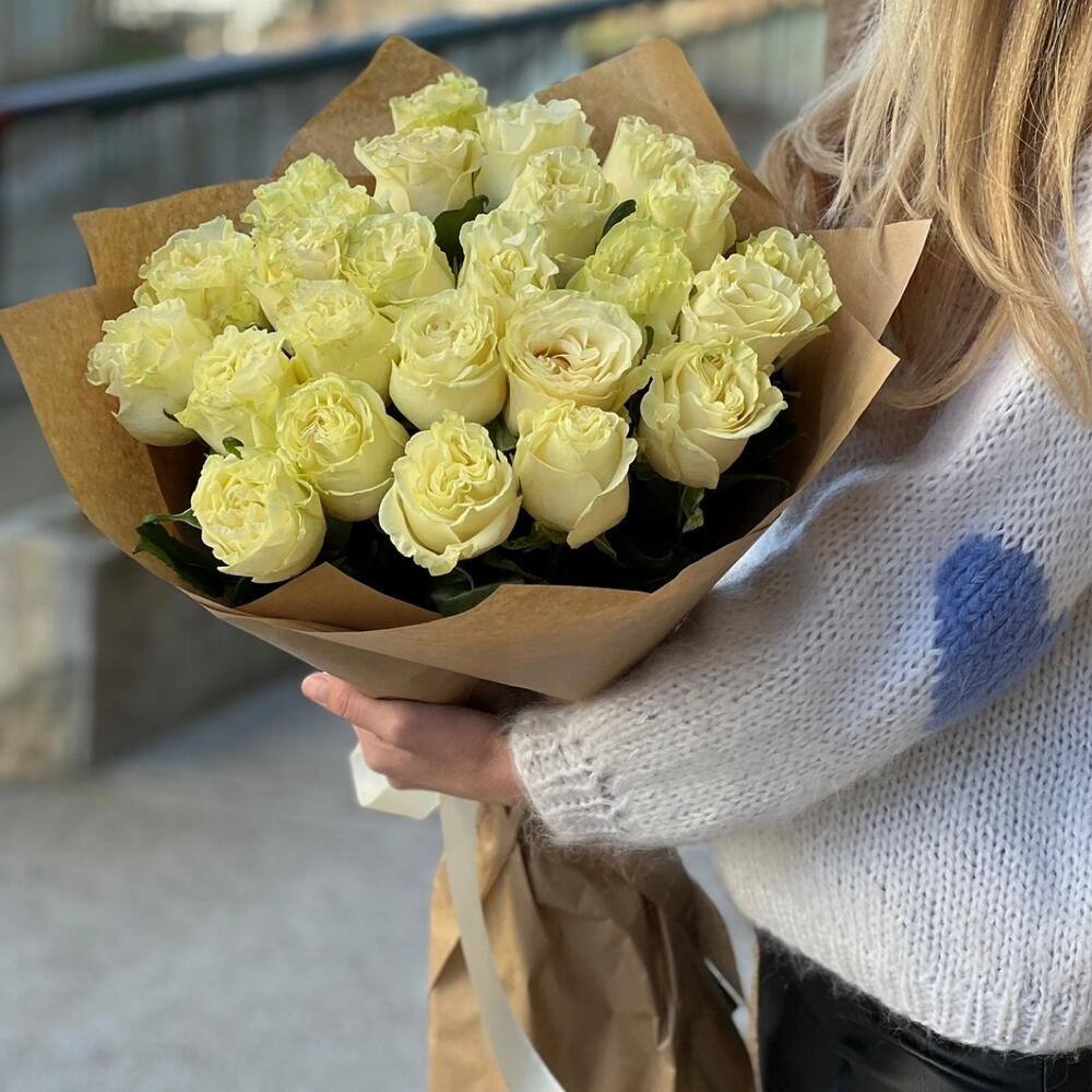 Букет из 25 белых роз - это прекрасный подарок для любителей красоты и роматиков. Этот букет состоит из 25 белых роз, которые символизируют чистоту, невинность и любовь. Этот букет идеально подходит для различных праздников и мероприятий, таких как свадьбы, рождества, день рождения и другие специальные дни.