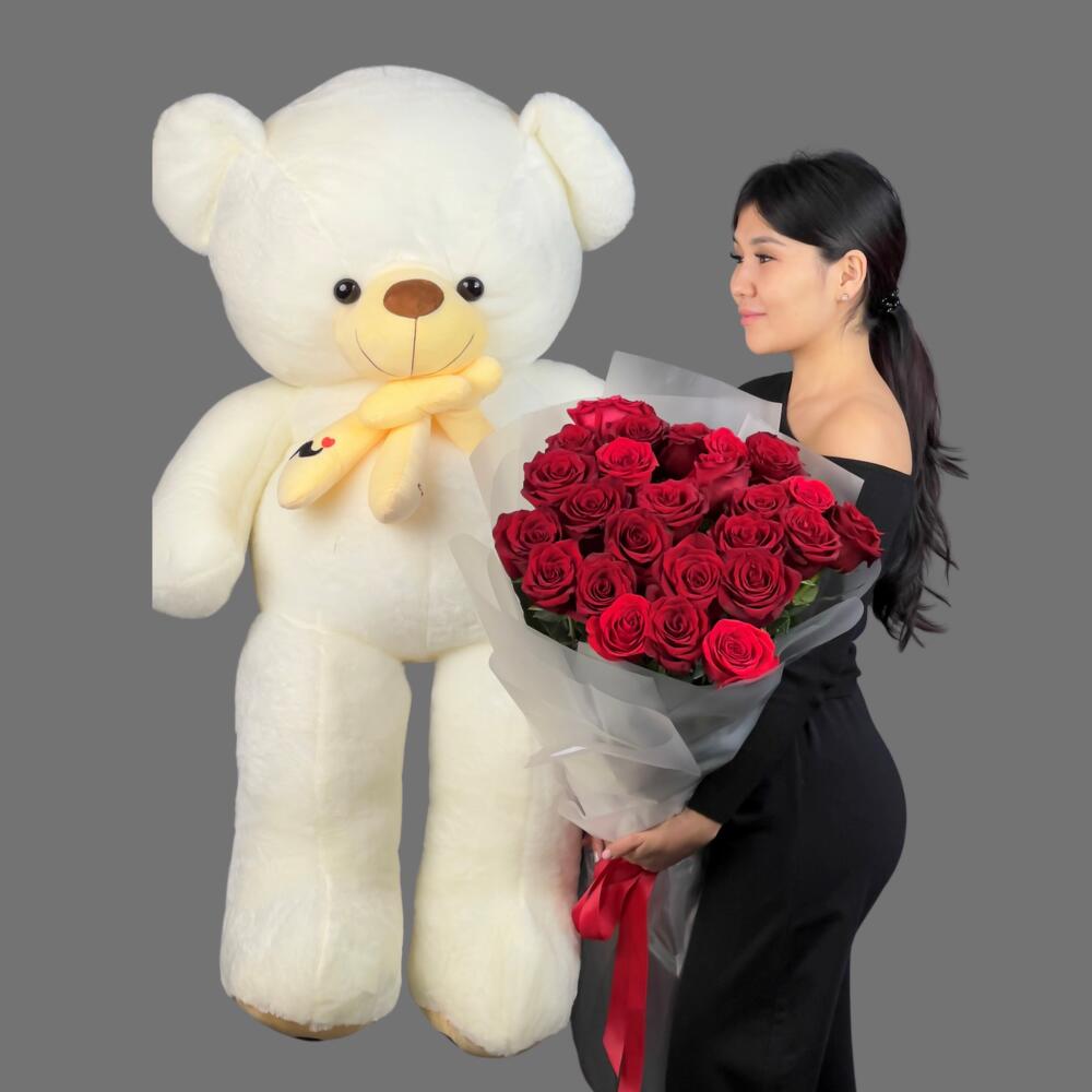 голландские розы 90 см - 25 дана мягкая игрушка мишка 100 см - 1 дана