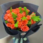 Букет из 25 оранжевых роз с зеленью с доставкой по Алматы Представляем вашему вниманию великолепный Букет из 25 оранжевых роз с зеленью, который станет идеальным подарком для любого случая. Этот яркий и жизнерадостный букет подчеркнёт вашу заботу и внимание, а также подарит отличное настроение получателю.