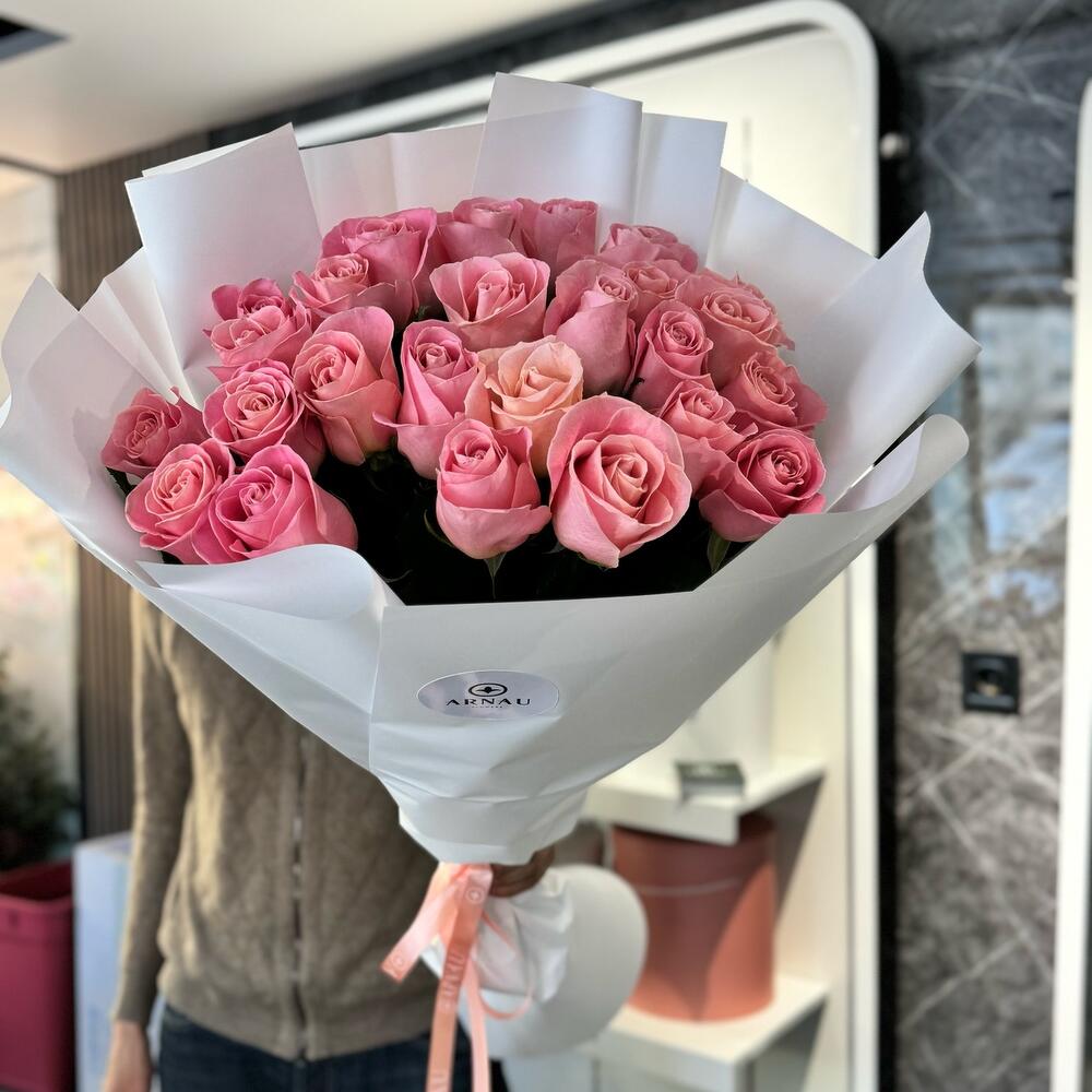 Букет из 25 шт розовых роз 70 см