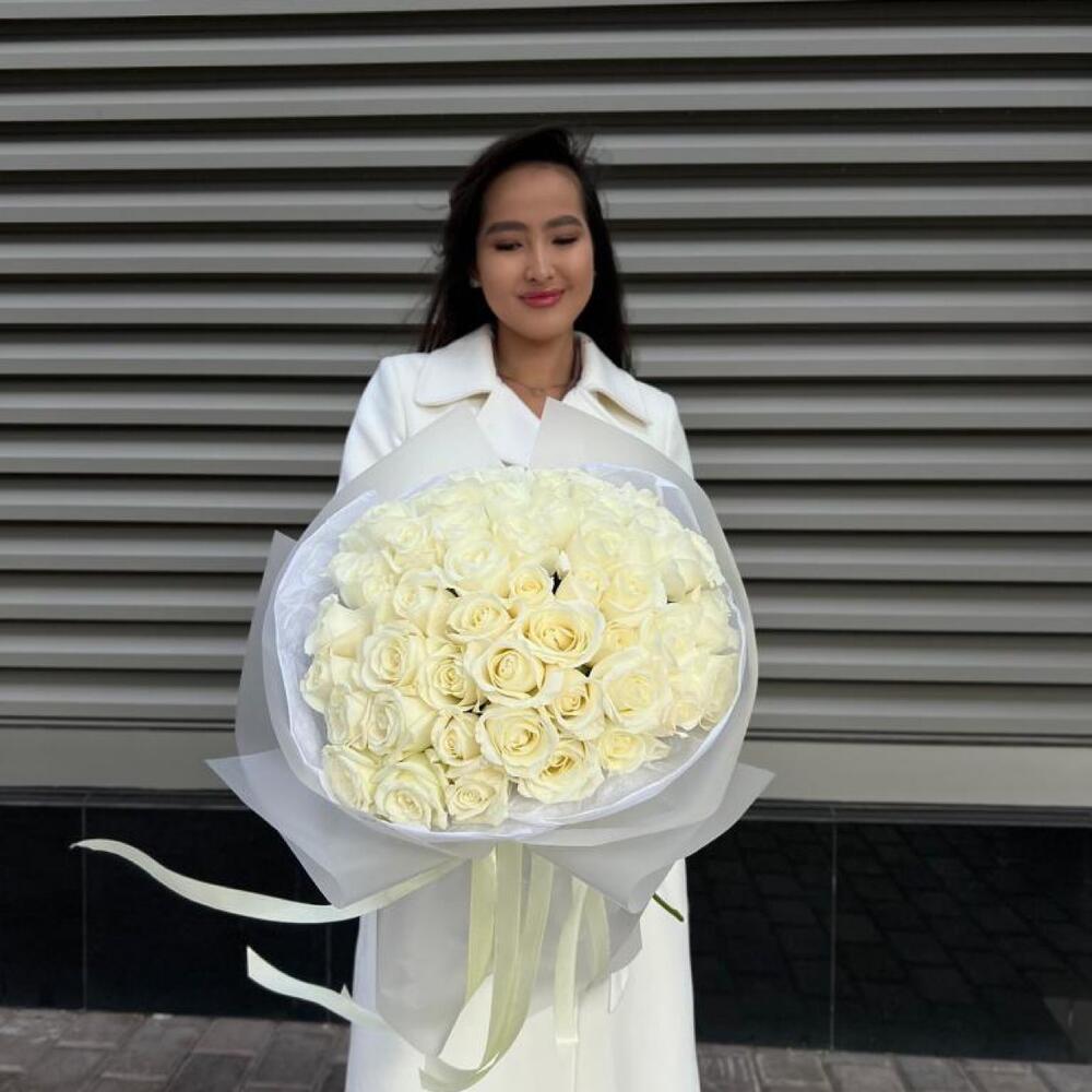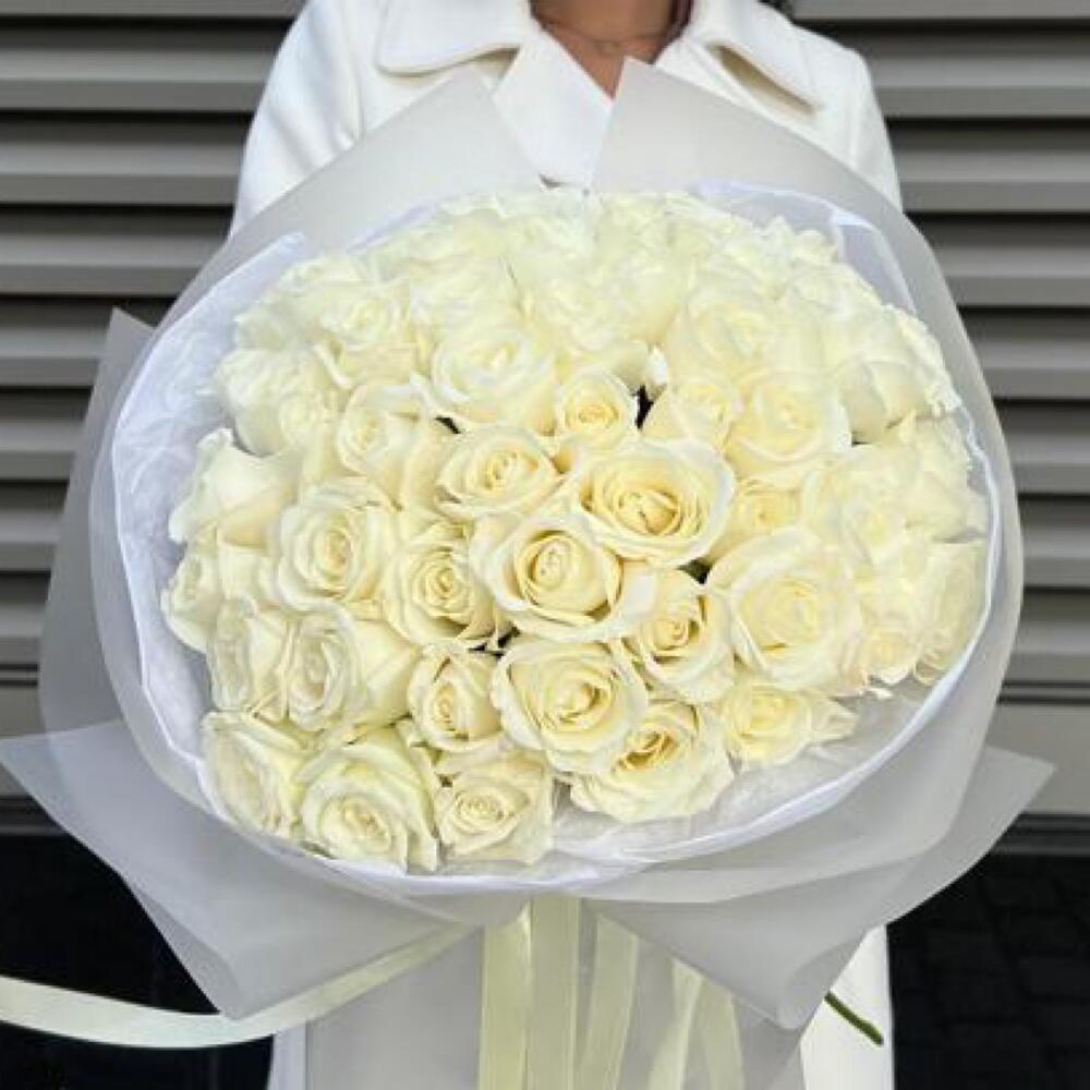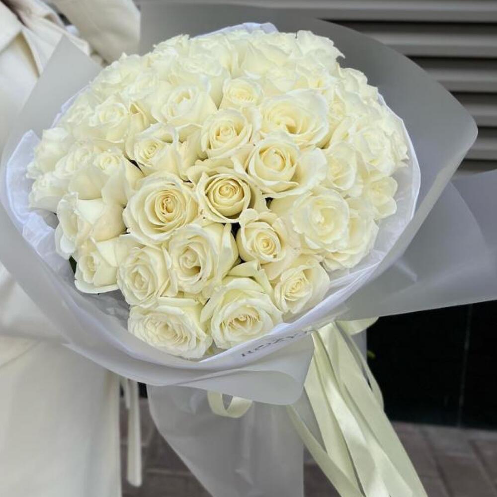 Букет из 51 белоснежной розы в фирменной упаковке