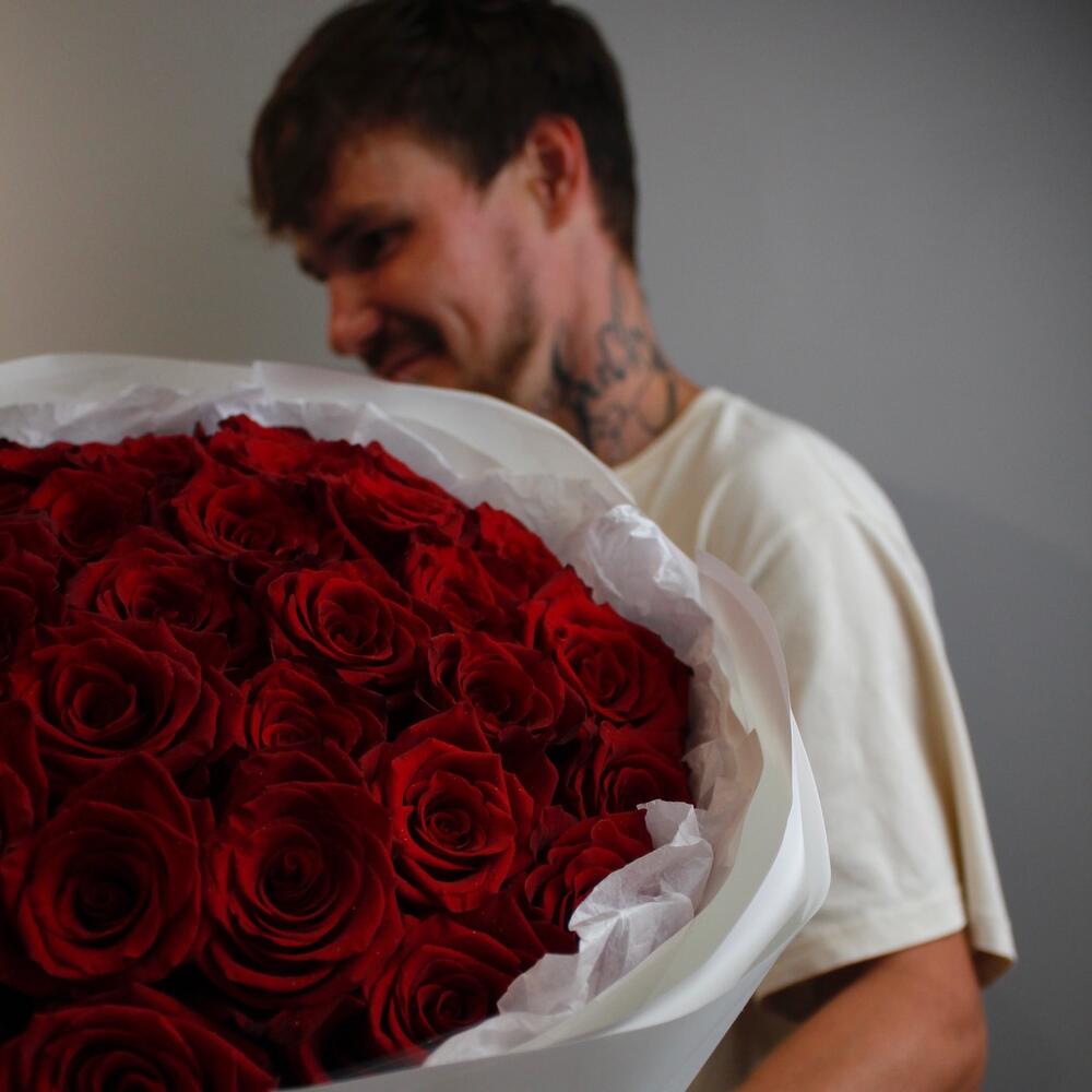 Дизайнерлік қаптама - 1 дана Роза Эквадор 60 см - 51 дана
