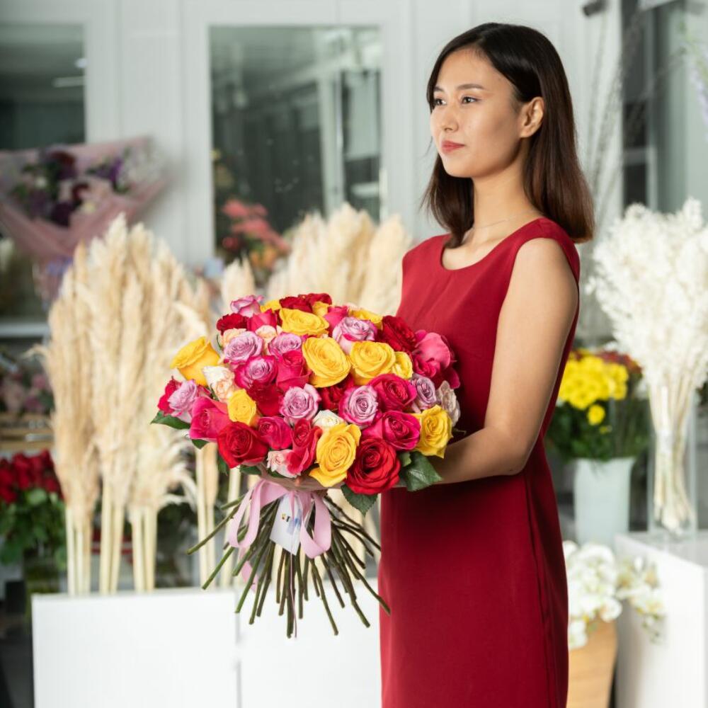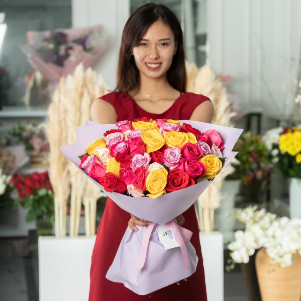 51 дана аралас голландиялық раушаннан 50 см букет "Колибри"