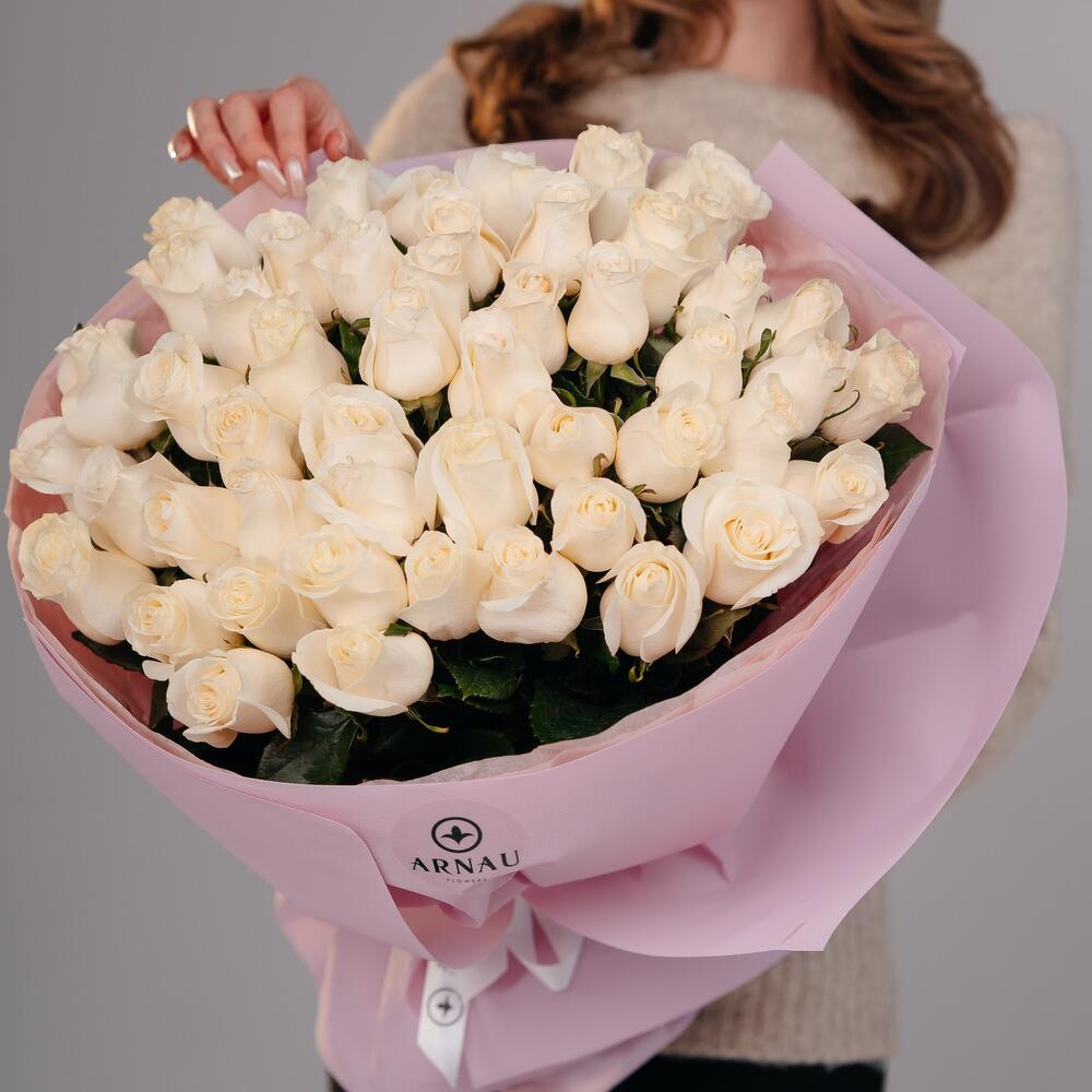 Дизайнерлік қаптама - 1 дана роза эквадор 50-60 см - 51 дана