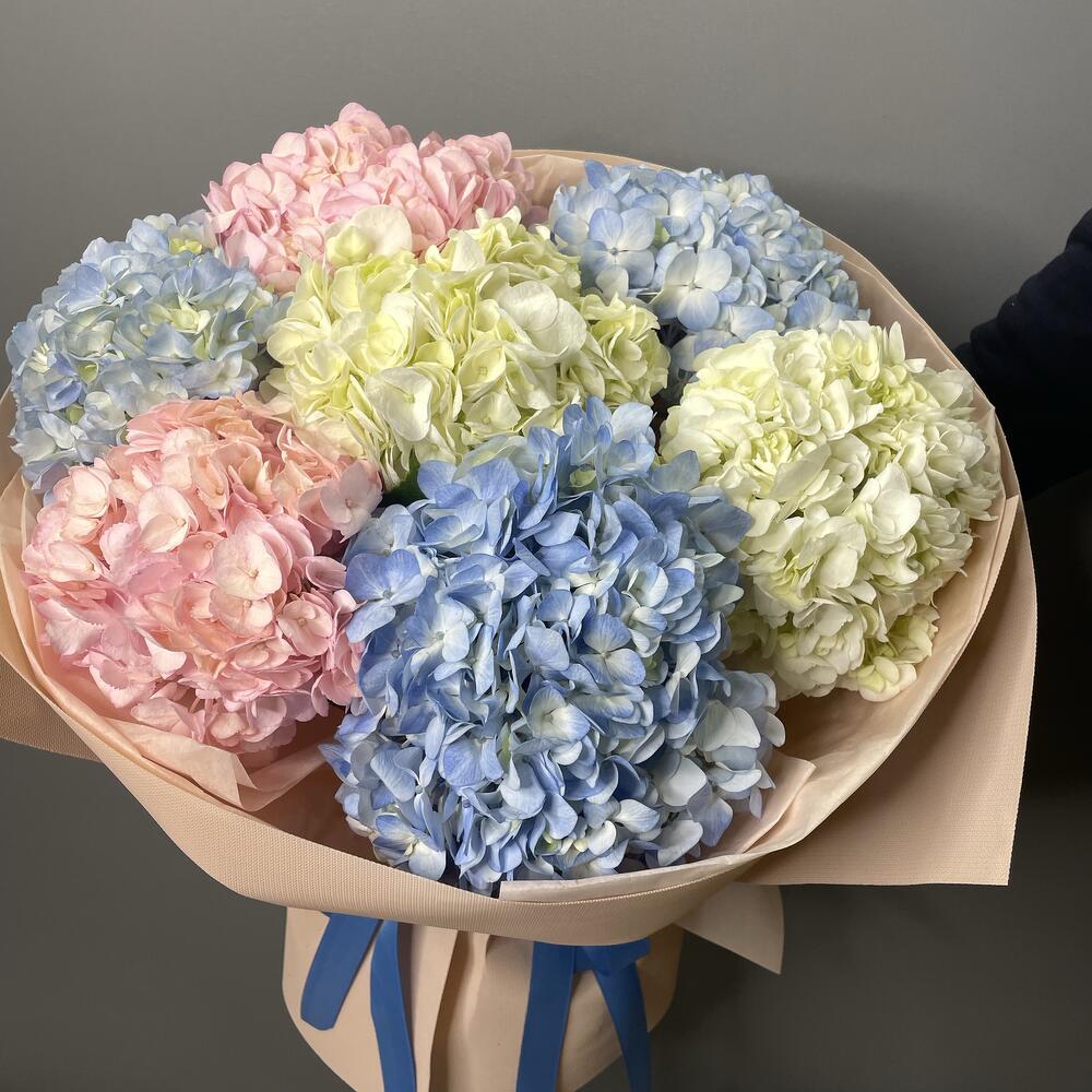 Сән-салтанатты гортензиядан жасалған букет, өте көлемді.