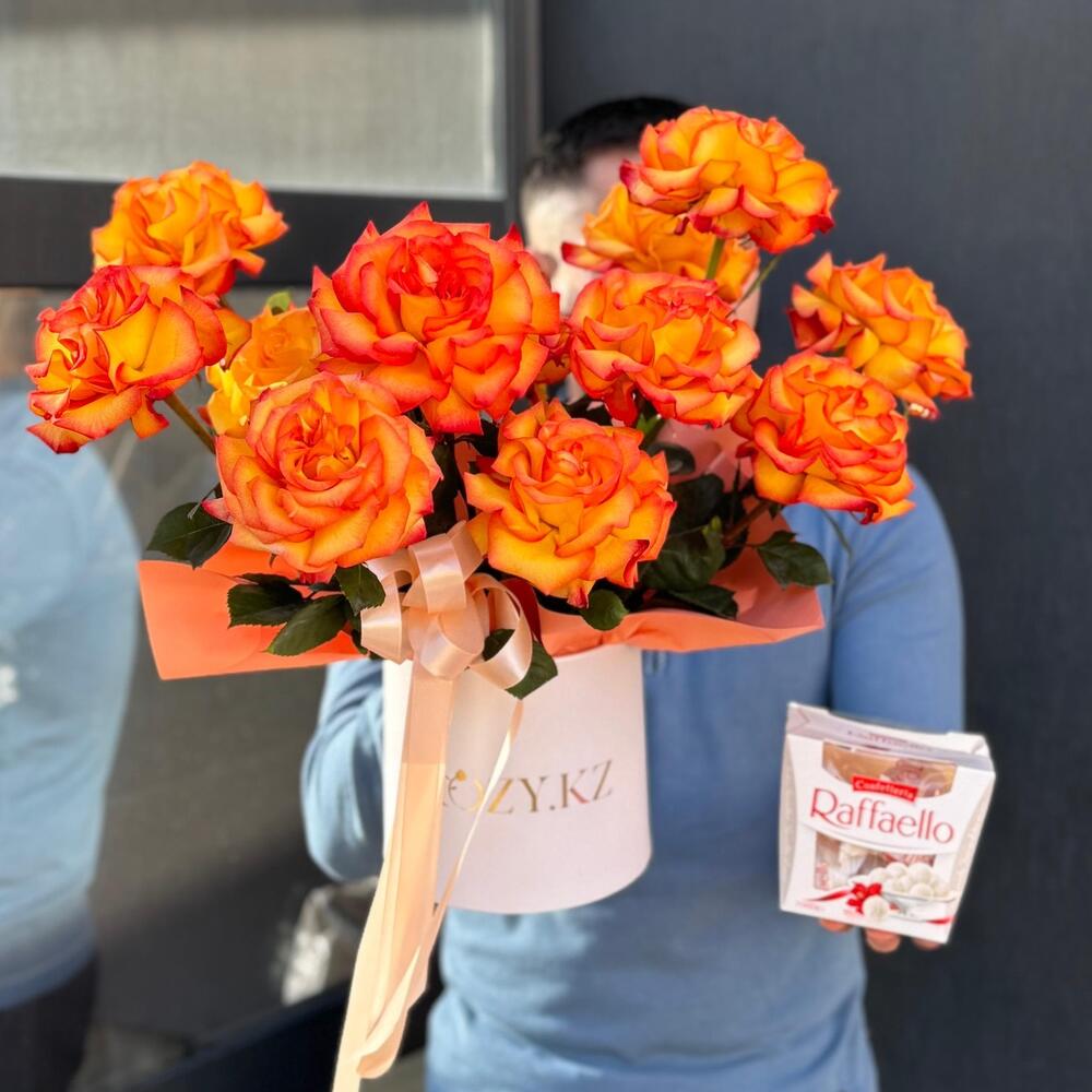 Раушан - 13 дана Дизайнерлік қаптама - 2 дана Флористикалық Оазис - 1 дана раффаэлло 150 гр - 1 дана