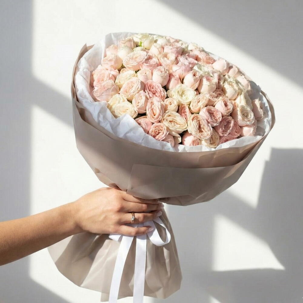 Букет из пионовидных кустовых роз — нежная роскошь в каждом лепестке
