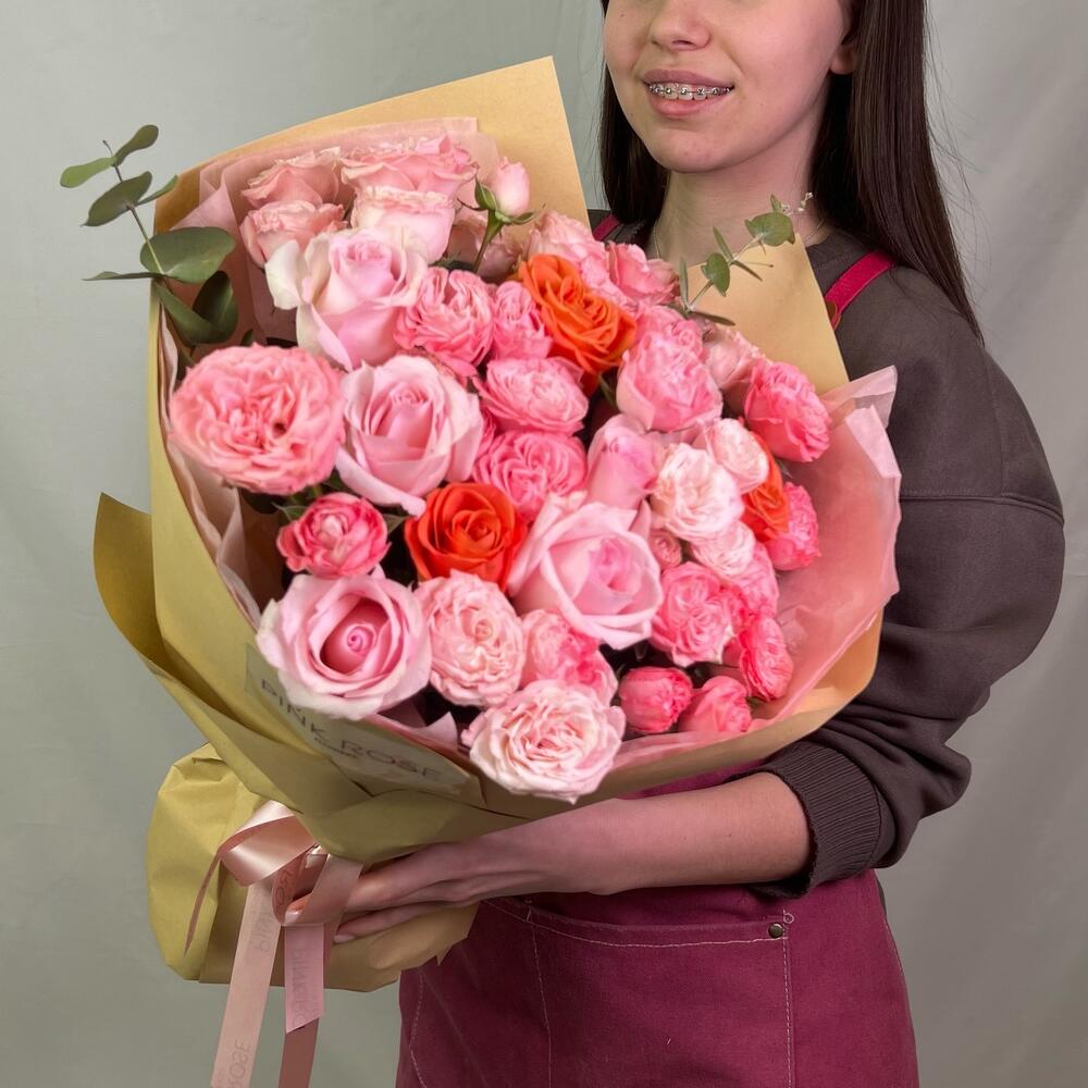 Эвкалипт - 3 дана Раушан - 7 дана пионовидные кустовые розы - 9 дана