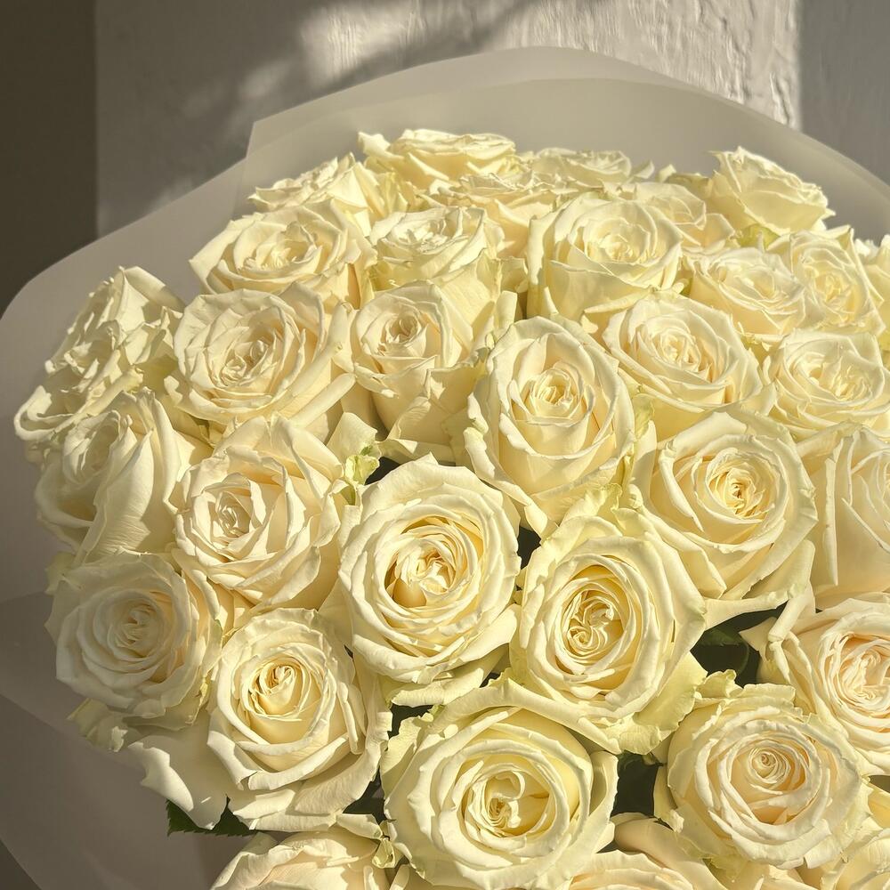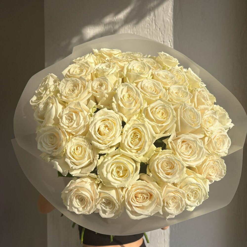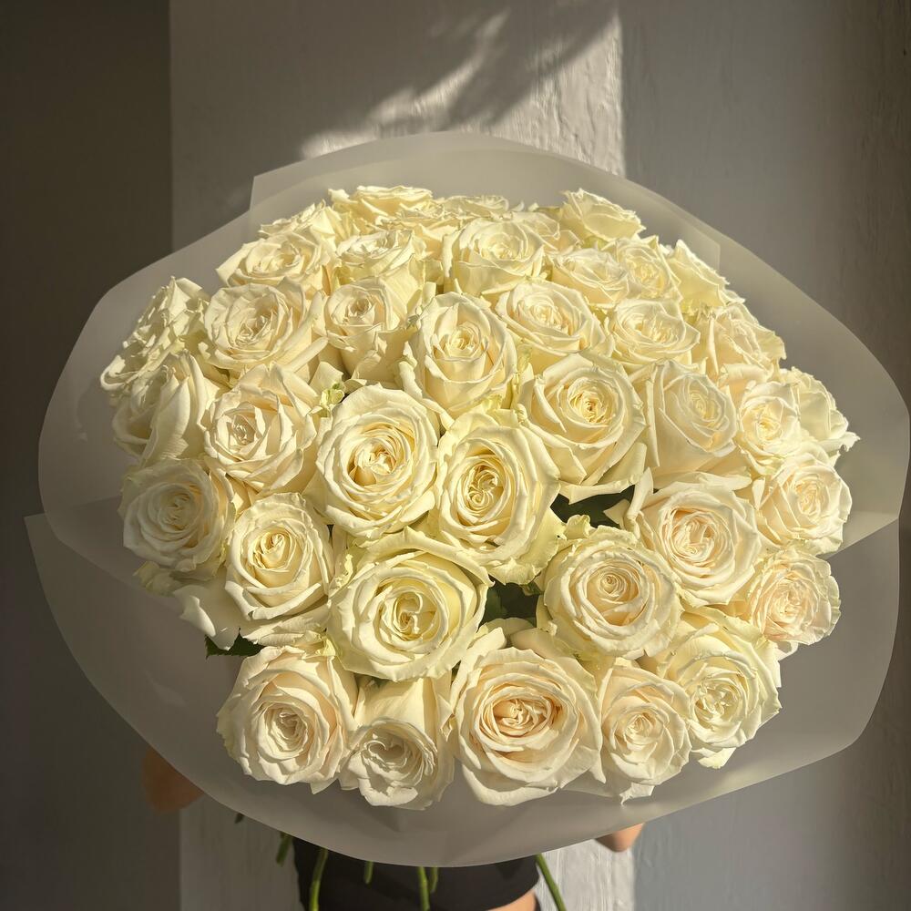 белая роза - 41 дана Фирменная упаковка - 1 дана инструкция по уходу за цветами - 1 дана витамины для цветов (кризал) - 1 дана