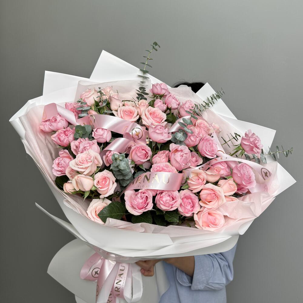 Эвкалипт - 3 дана Бұта раушаны - 10 дана Дизайнерлік қаптама - 1 дана