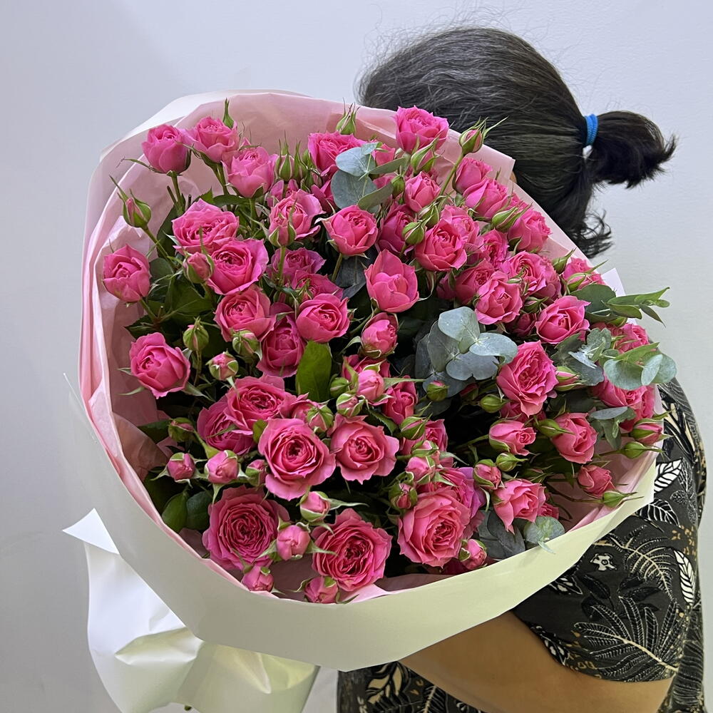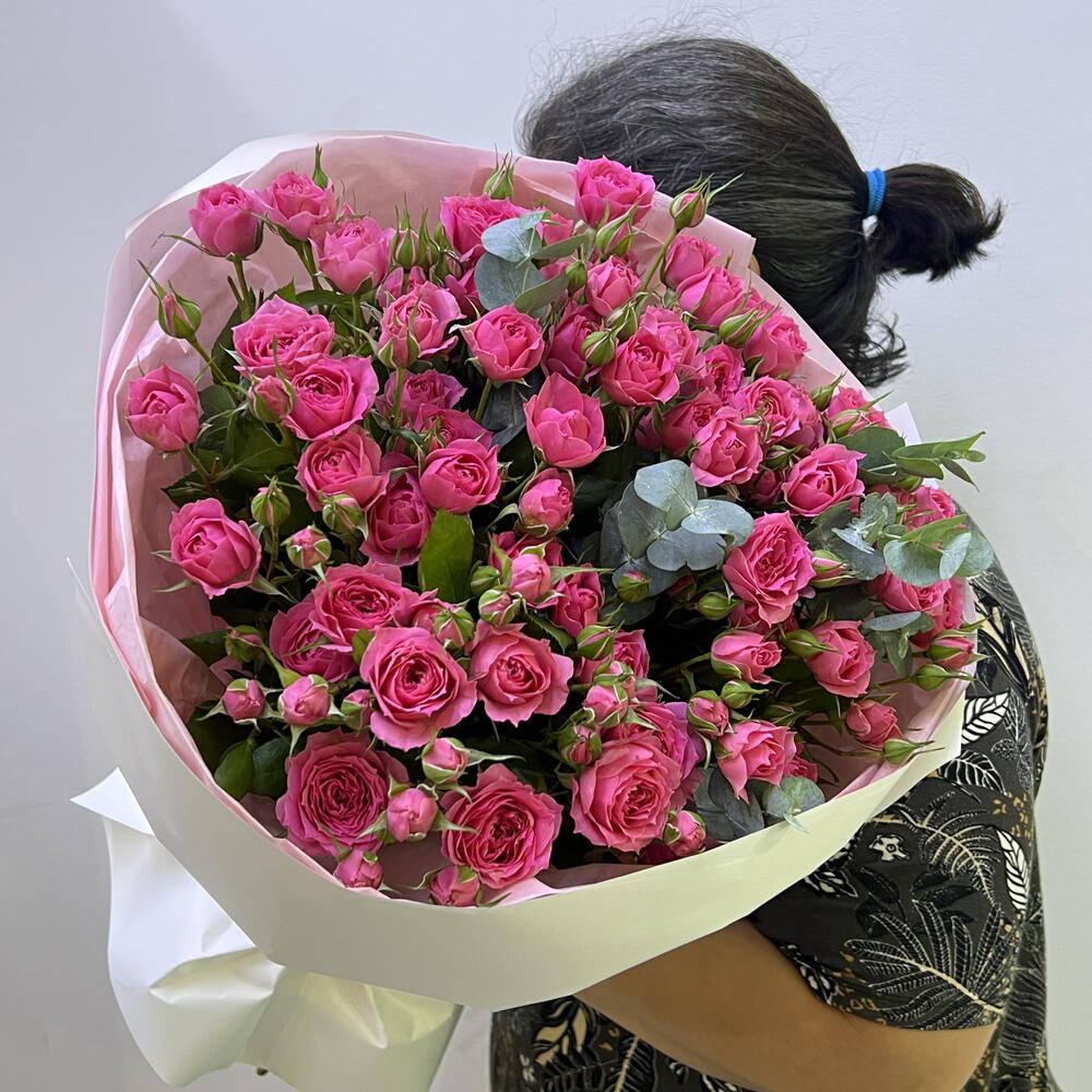 Этот изящный монобукет станет украшением любого интерьера или праздничного стола. Состав букета: 3 ветки свежего эвкалипта, добавляющие неповторимый аромат и 11 голов спрей роз. Розы придают композиции насыщенность и экстравагантность, а эвкалипт заряжает свежестью и дышит свободой. Такое сочетание позволяет глазу насладиться интересным контрастом огонь-вода и создает цветочный взрыв, который поражает своей красками.