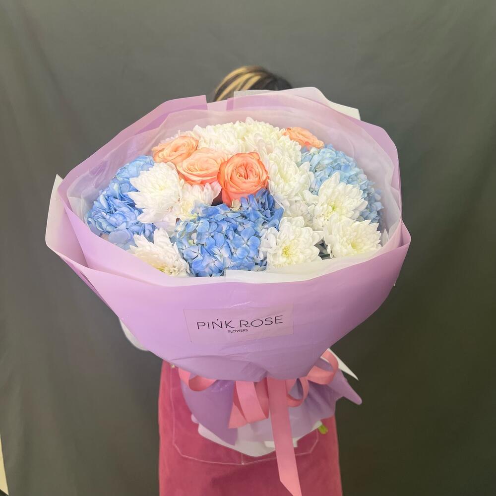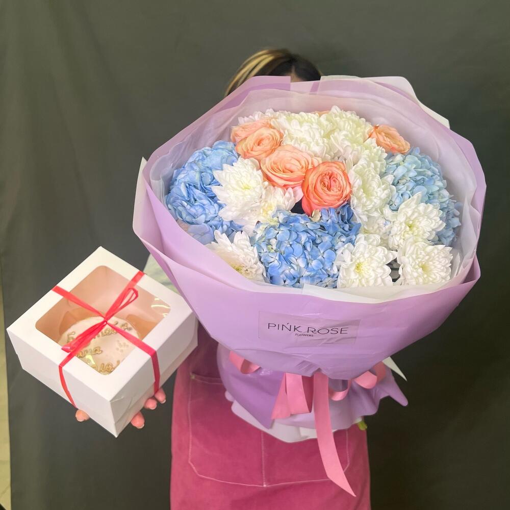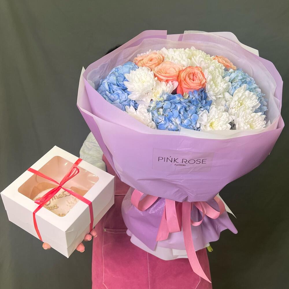 Гортензия - 3 дана Хризантема бұтасы - 4 дана Роза пионовидная - 5 дана бенто торт - 1 дана