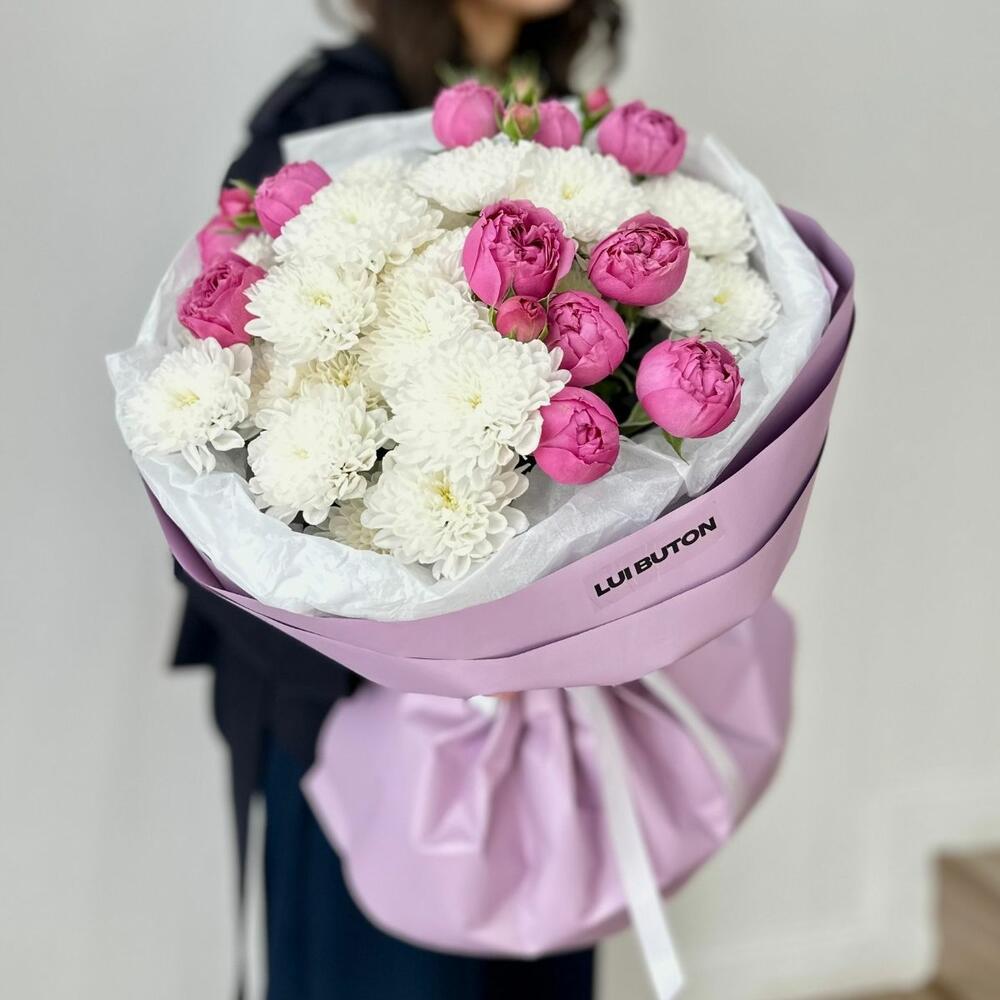 хризантемы - 4 дана кустовые пионовидные розы - 3 дана