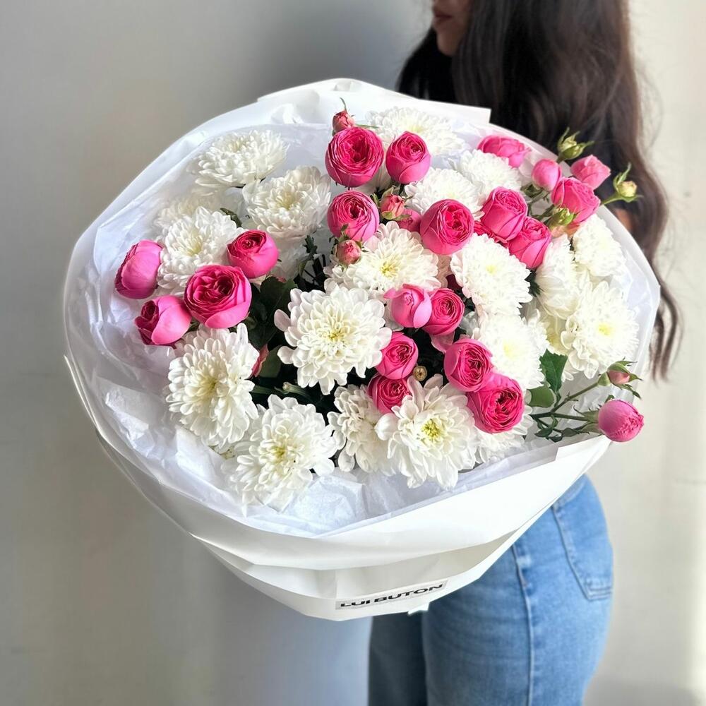хризантемы - 5 дана бұта раушандары - 5 дана