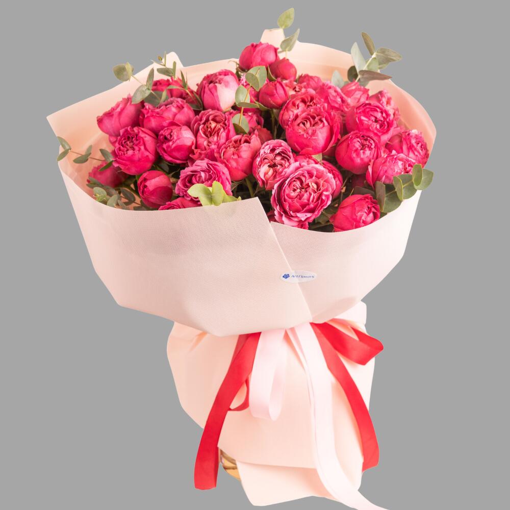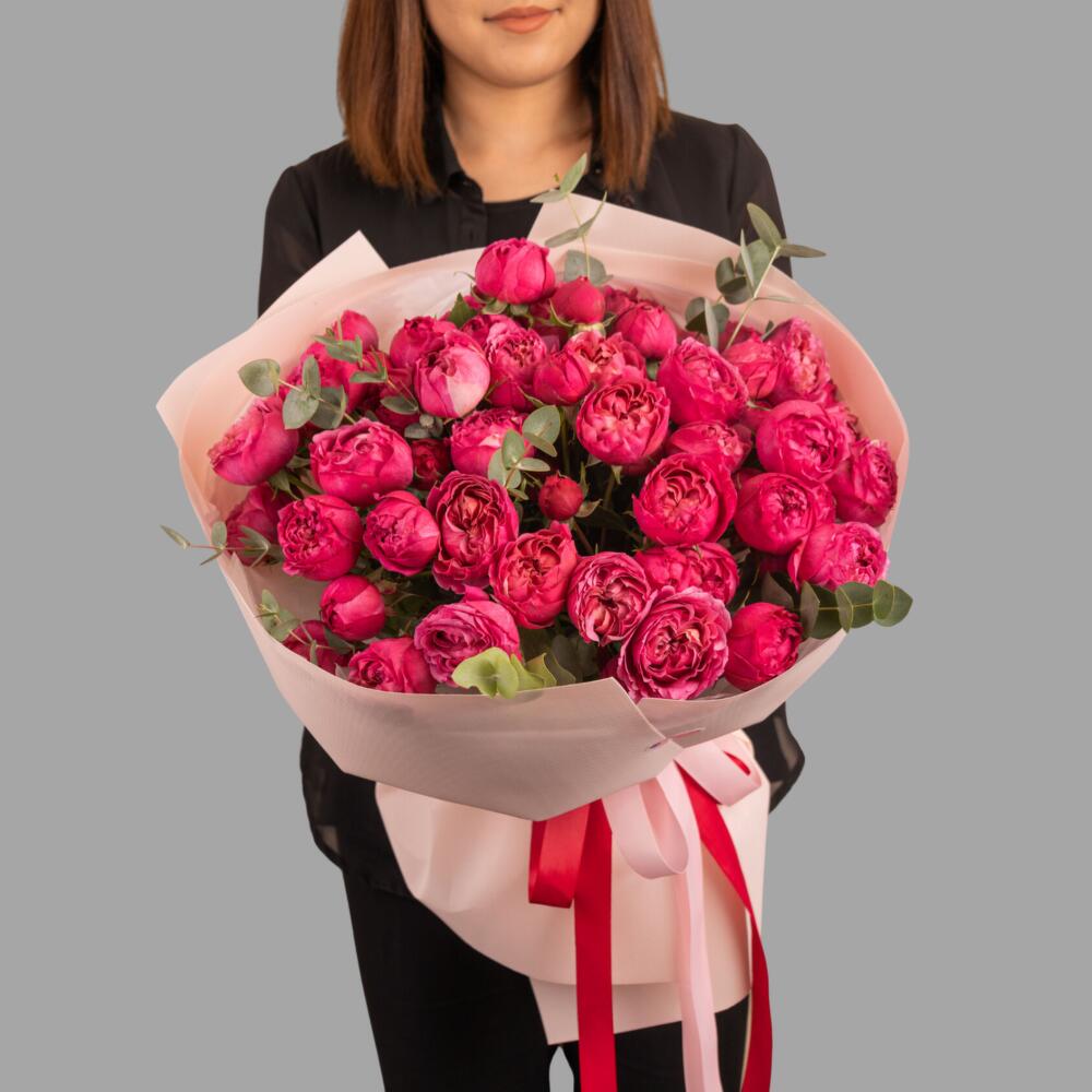 Яркий букет из пионовидных спрей роз.