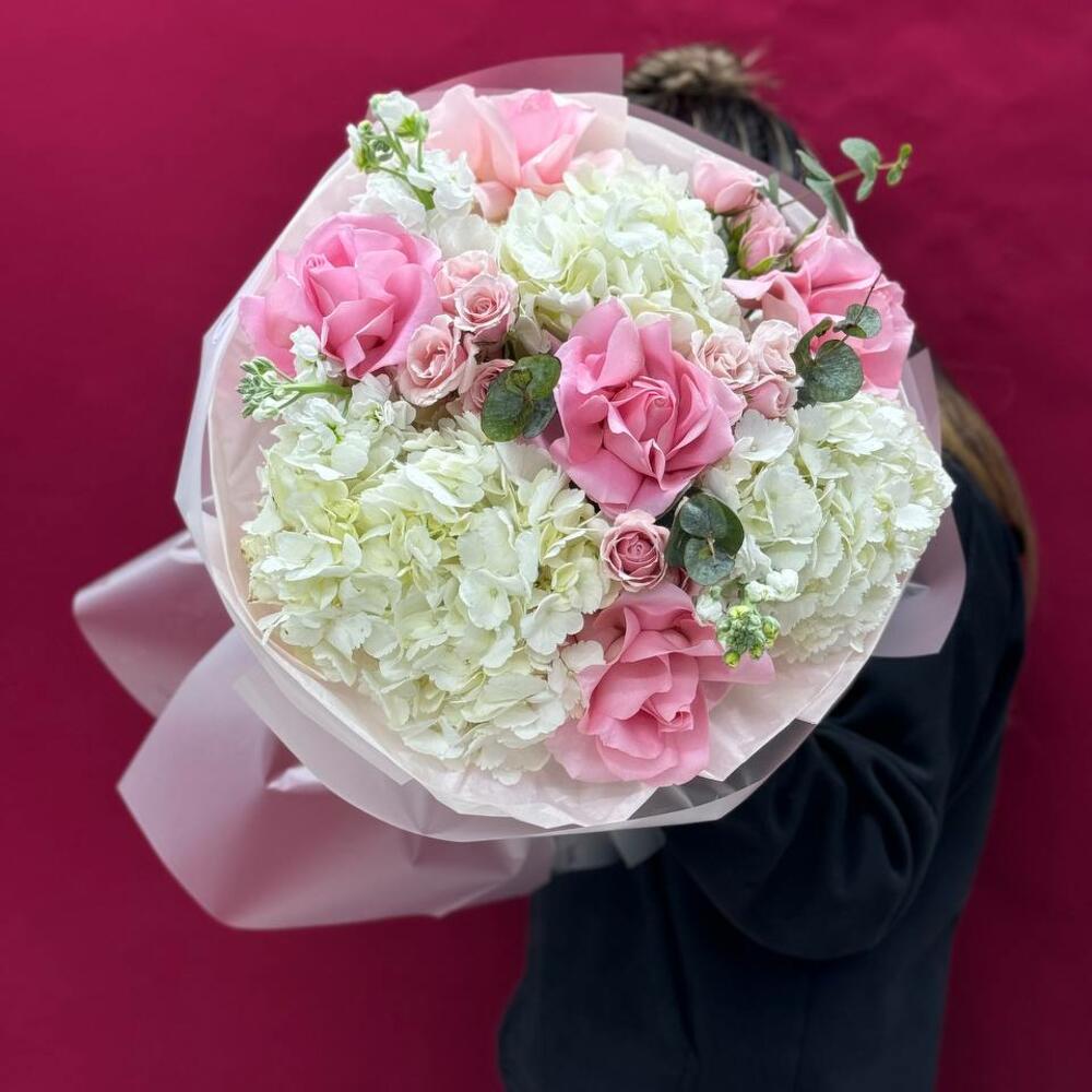 Гортензия - 3 дана Маттиола - 3 дана Эвкалипт - 1 дана спрей-роза - 4 дана люсиано - 5 дана