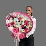 Хризантема бұтасы - 1 дана Бұта раушаны - 6 дана лизиантусов - 11 дана аква бумага - 1 дана