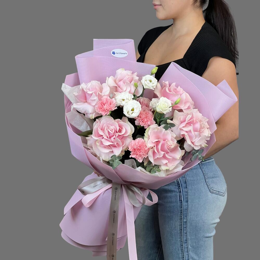 Лизиантус - 2 дана Эвкалипт - 1 дана Раушан - 7 дана Гвоздика - 3 дана