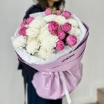 Этот букет из кустовых пионовидных роз и хризантем создан для того, чтобы подарить чувство лёгкости и нежности