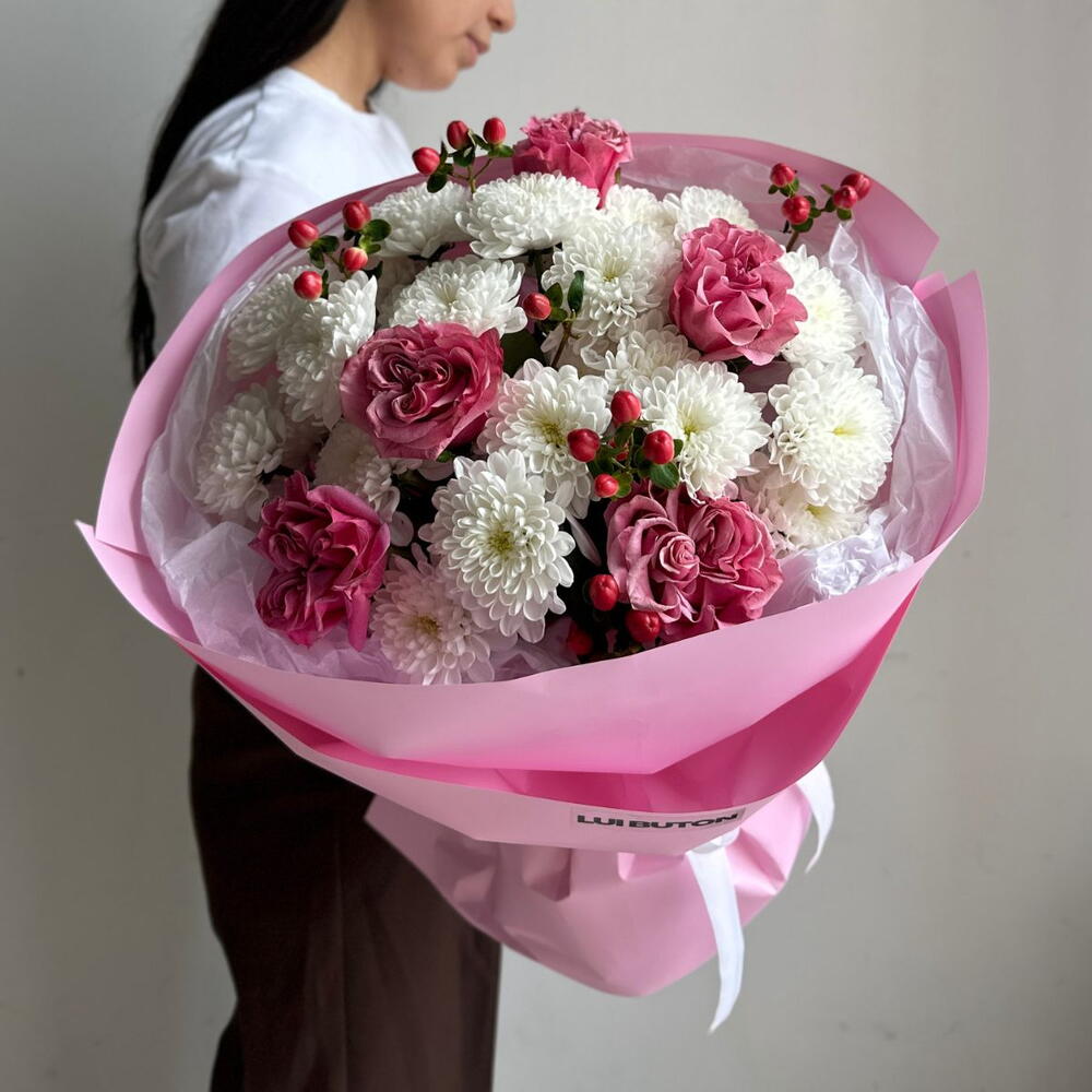 Гиперикум - 2 дана хризантемы - 5 дана пионовидные розы - 5 дана