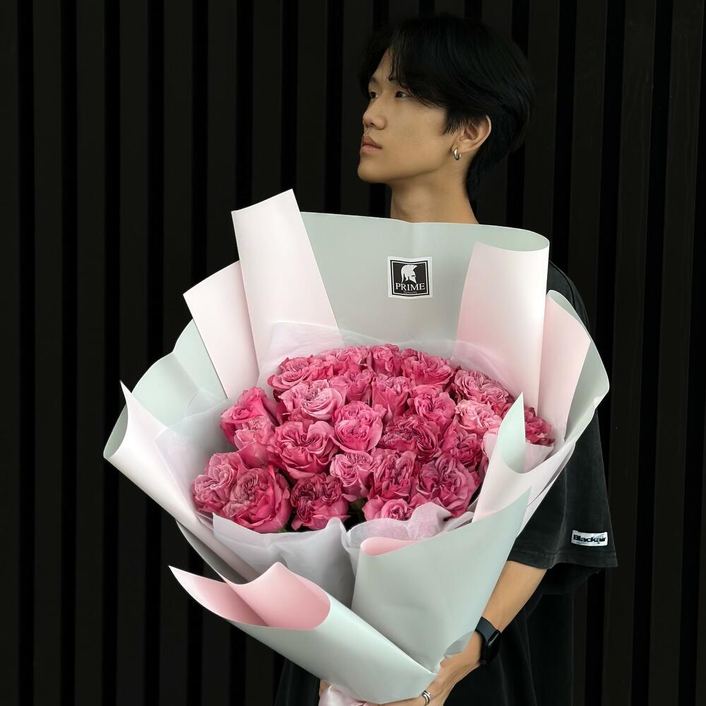 Букет из 25 розовых роз - Высота 50 - 60 см. - Фирменное оформление. - Фирменный шоколад в подарок!