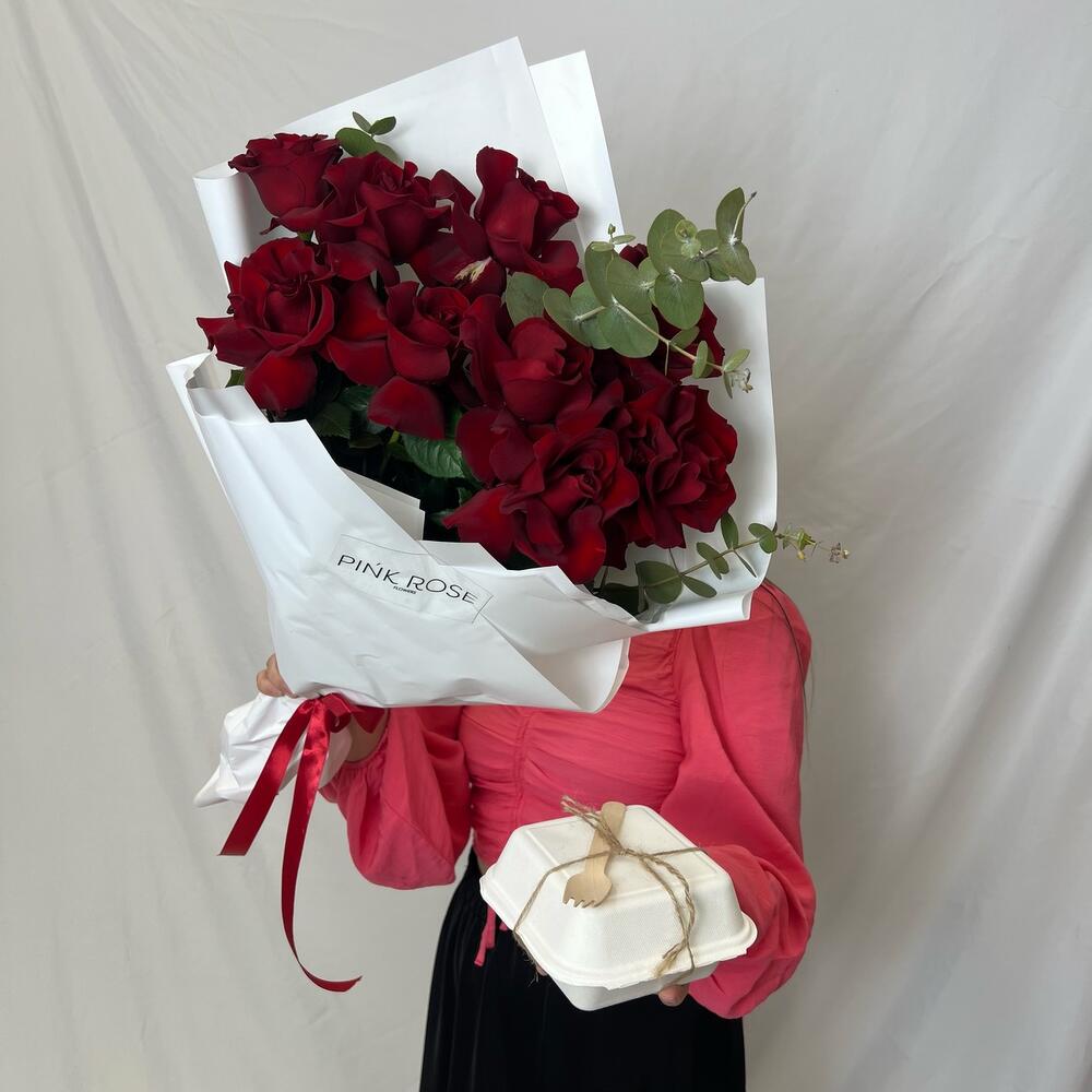 Букет из красных французских роз + бенто торт , запомнится надолго вашему получателю 🥰 состав торта молочный ❤️